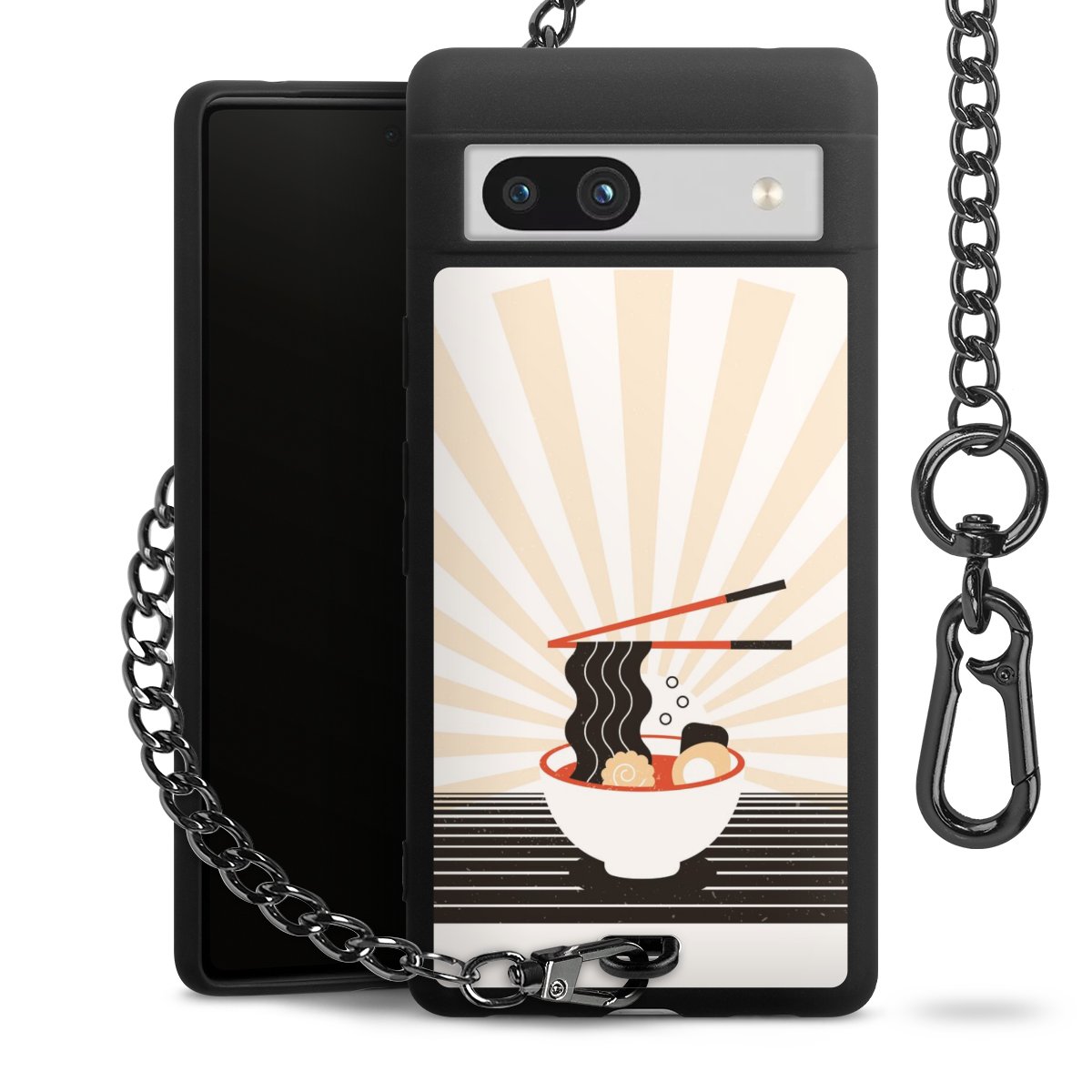 Die mattschwarze Silikon-Handyhülle besteht aus robustem TPU (thermoplastisches Polyurethan). Sie ist flexibel und schützt Dein Smartphone vor Stößen und Kratzern. Die Kette sowie der Karabinerhaken sind aus Metall in Gunmetal-Optik gefertigt. Für dieses Produkt kommen ausschließlich TÜV-geprüfte Materialien zum Einsatz.