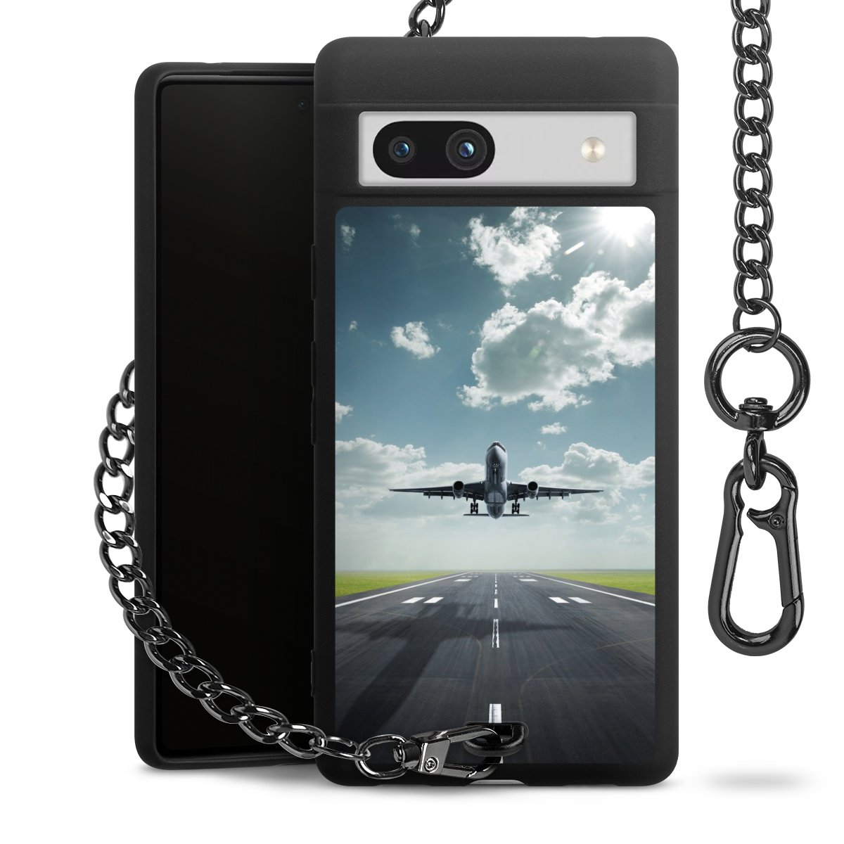 - Mattschwarze Handyhülle mit Metallkette