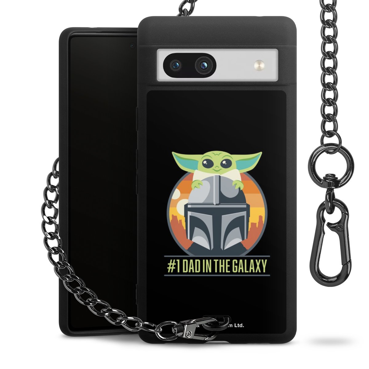 Die mattschwarze Silikon-Handyhülle besteht aus robustem TPU (thermoplastisches Polyurethan). Sie ist flexibel und schützt Dein Smartphone vor Stößen und Kratzern. Die Kette sowie der Karabinerhaken sind aus Metall in Gunmetal-Optik gefertigt. Für dieses Produkt kommen ausschließlich TÜV-geprüfte Materialien zum Einsatz.