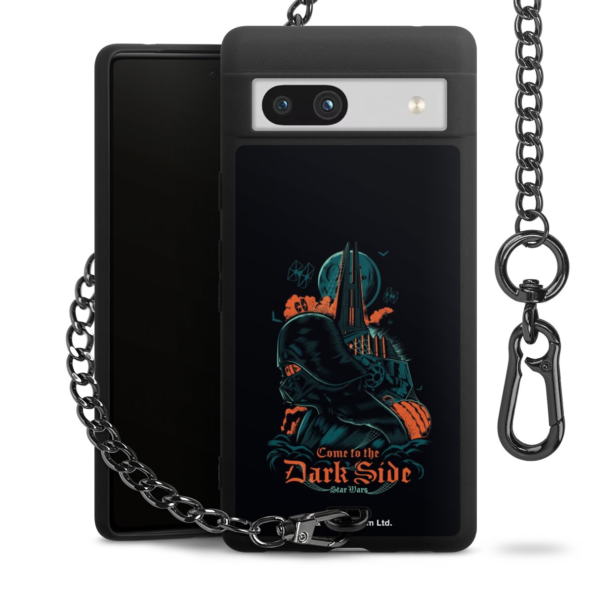 Die mattschwarze Silikon-Handyhülle besteht aus robustem TPU (thermoplastisches Polyurethan). Sie ist flexibel und schützt Dein Smartphone vor Stößen und Kratzern. Die Kette sowie der Karabinerhaken sind aus Metall in Gunmetal-Optik gefertigt. Für dieses Produkt kommen ausschließlich TÜV-geprüfte Materialien zum Einsatz.