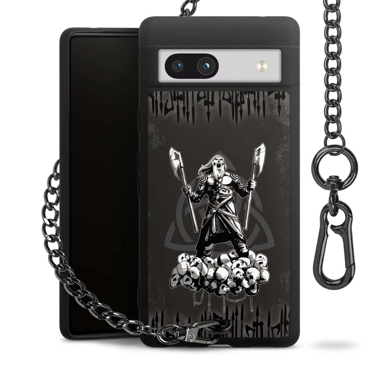 Die mattschwarze Silikon-Handyhülle besteht aus robustem TPU (thermoplastisches Polyurethan). Sie ist flexibel und schützt Dein Smartphone vor Stößen und Kratzern. Die Kette sowie der Karabinerhaken sind aus Metall in Gunmetal-Optik gefertigt. Für dieses Produkt kommen ausschließlich TÜV-geprüfte Materialien zum Einsatz.