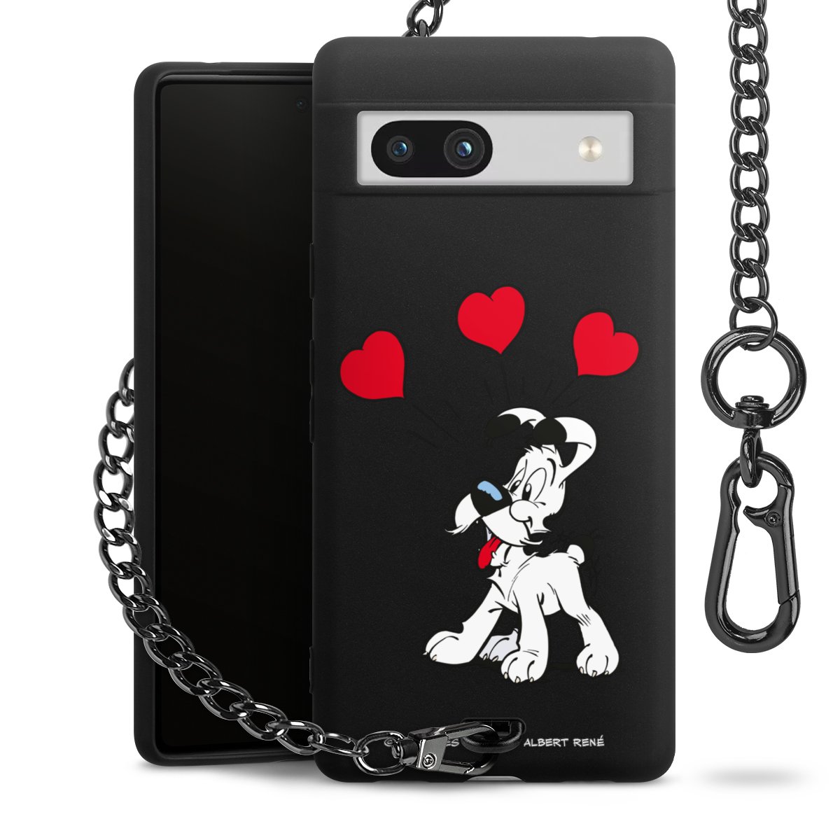 Die mattschwarze Silikon-Handyhülle besteht aus robustem TPU (thermoplastisches Polyurethan). Sie ist flexibel und schützt Dein Smartphone vor Stößen und Kratzern. Die Kette sowie der Karabinerhaken sind aus Metall in Gunmetal-Optik gefertigt. Für dieses Produkt kommen ausschließlich TÜV-geprüfte Materialien zum Einsatz.