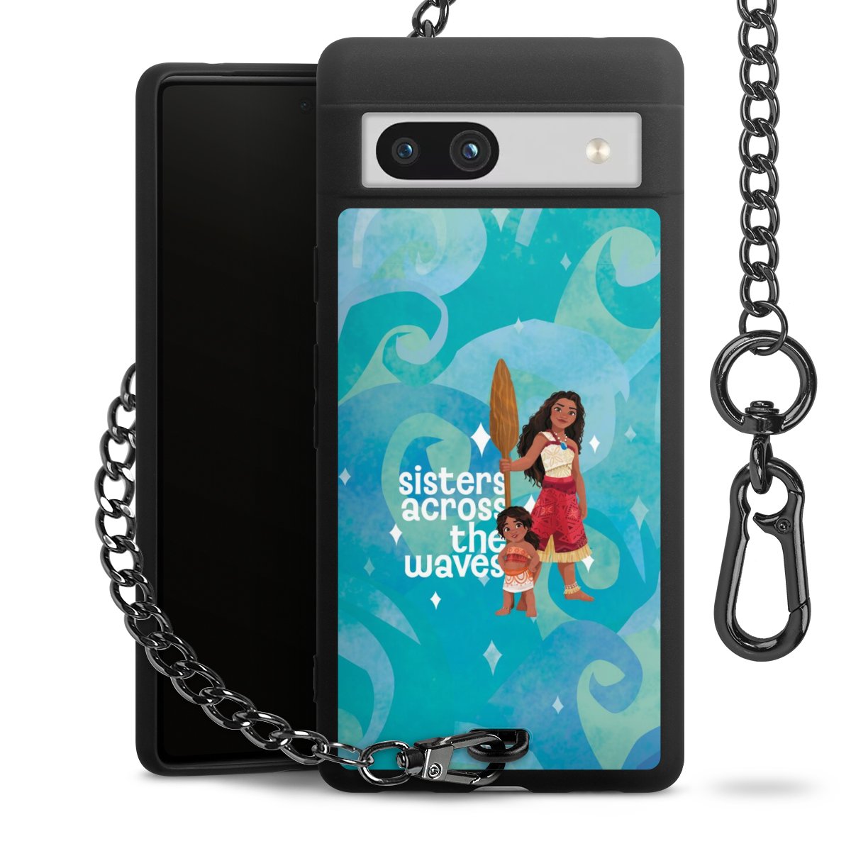 - Mattschwarze Handyhülle mit Metallkette