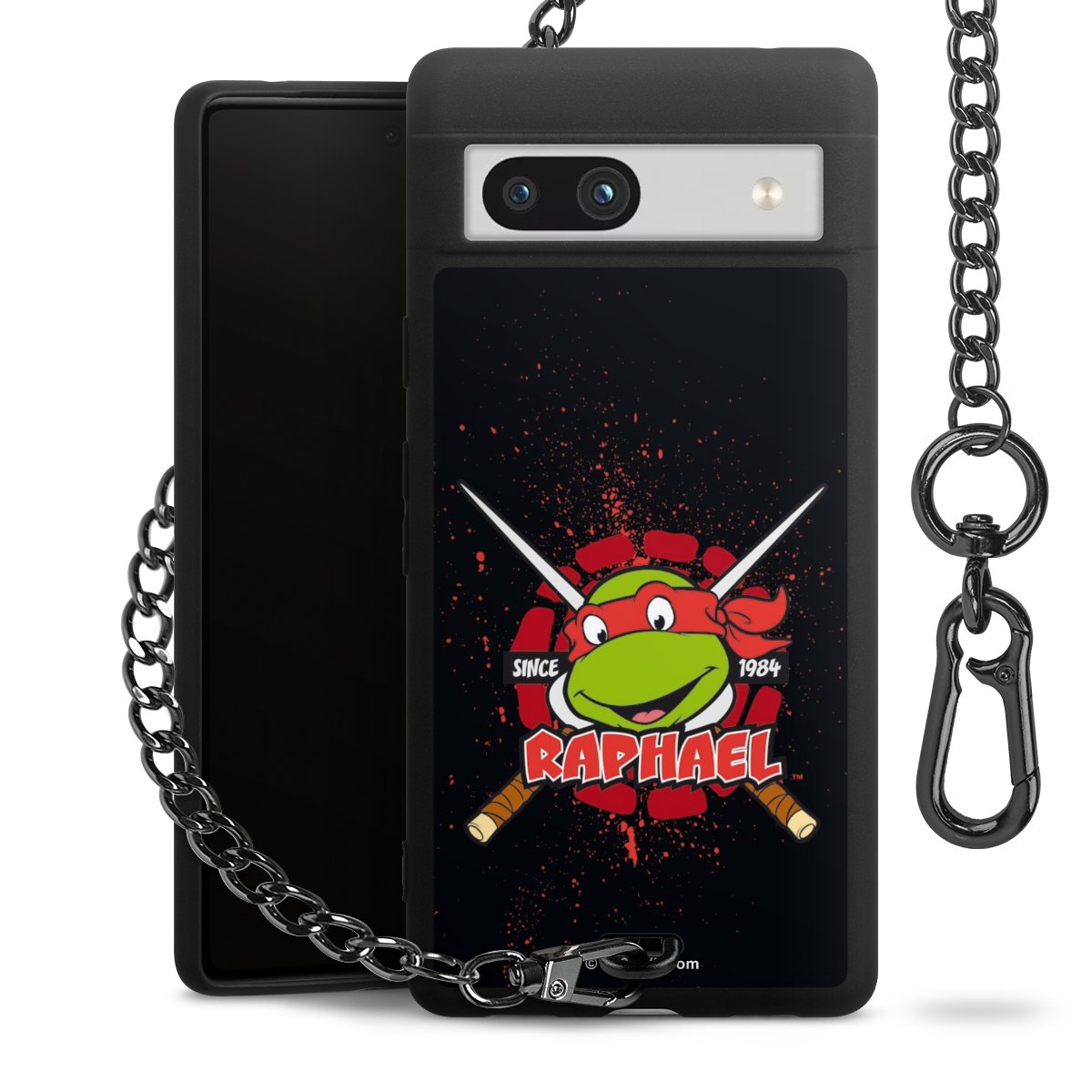 Die mattschwarze Silikon-Handyhülle besteht aus robustem TPU (thermoplastisches Polyurethan). Sie ist flexibel und schützt Dein Smartphone vor Stößen und Kratzern. Die Kette sowie der Karabinerhaken sind aus Metall in Gunmetal-Optik gefertigt. Für dieses Produkt kommen ausschließlich TÜV-geprüfte Materialien zum Einsatz.