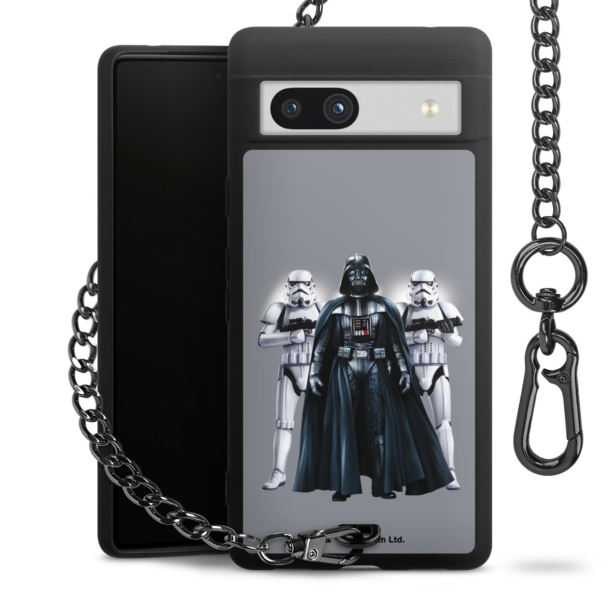 Die mattschwarze Silikon-Handyhülle besteht aus robustem TPU (thermoplastisches Polyurethan). Sie ist flexibel und schützt Dein Smartphone vor Stößen und Kratzern. Die Kette sowie der Karabinerhaken sind aus Metall in Gunmetal-Optik gefertigt. Für dieses Produkt kommen ausschließlich TÜV-geprüfte Materialien zum Einsatz.