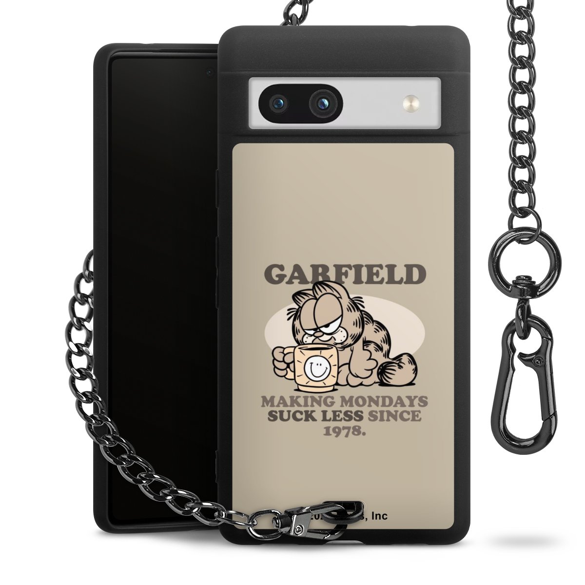 Die mattschwarze Silikon-Handyhülle besteht aus robustem TPU (thermoplastisches Polyurethan). Sie ist flexibel und schützt Dein Smartphone vor Stößen und Kratzern. Die Kette sowie der Karabinerhaken sind aus Metall in Gunmetal-Optik gefertigt. Für dieses Produkt kommen ausschließlich TÜV-geprüfte Materialien zum Einsatz.