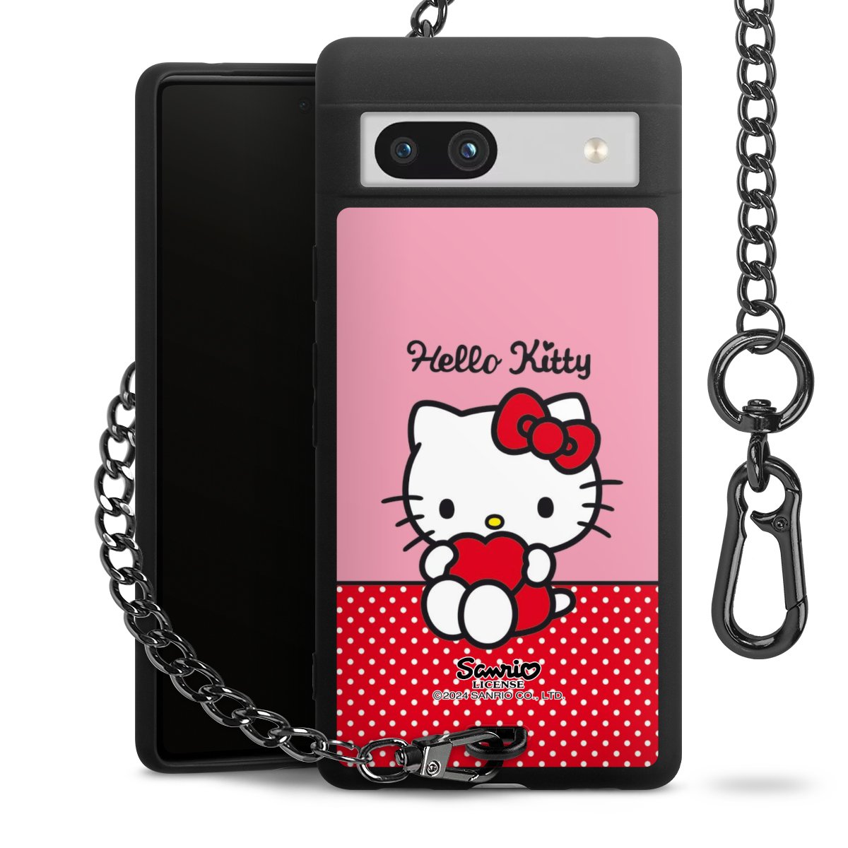 Die mattschwarze Silikon-Handyhülle besteht aus robustem TPU (thermoplastisches Polyurethan). Sie ist flexibel und schützt Dein Smartphone vor Stößen und Kratzern. Die Kette sowie der Karabinerhaken sind aus Metall in Gunmetal-Optik gefertigt. Für dieses Produkt kommen ausschließlich TÜV-geprüfte Materialien zum Einsatz.