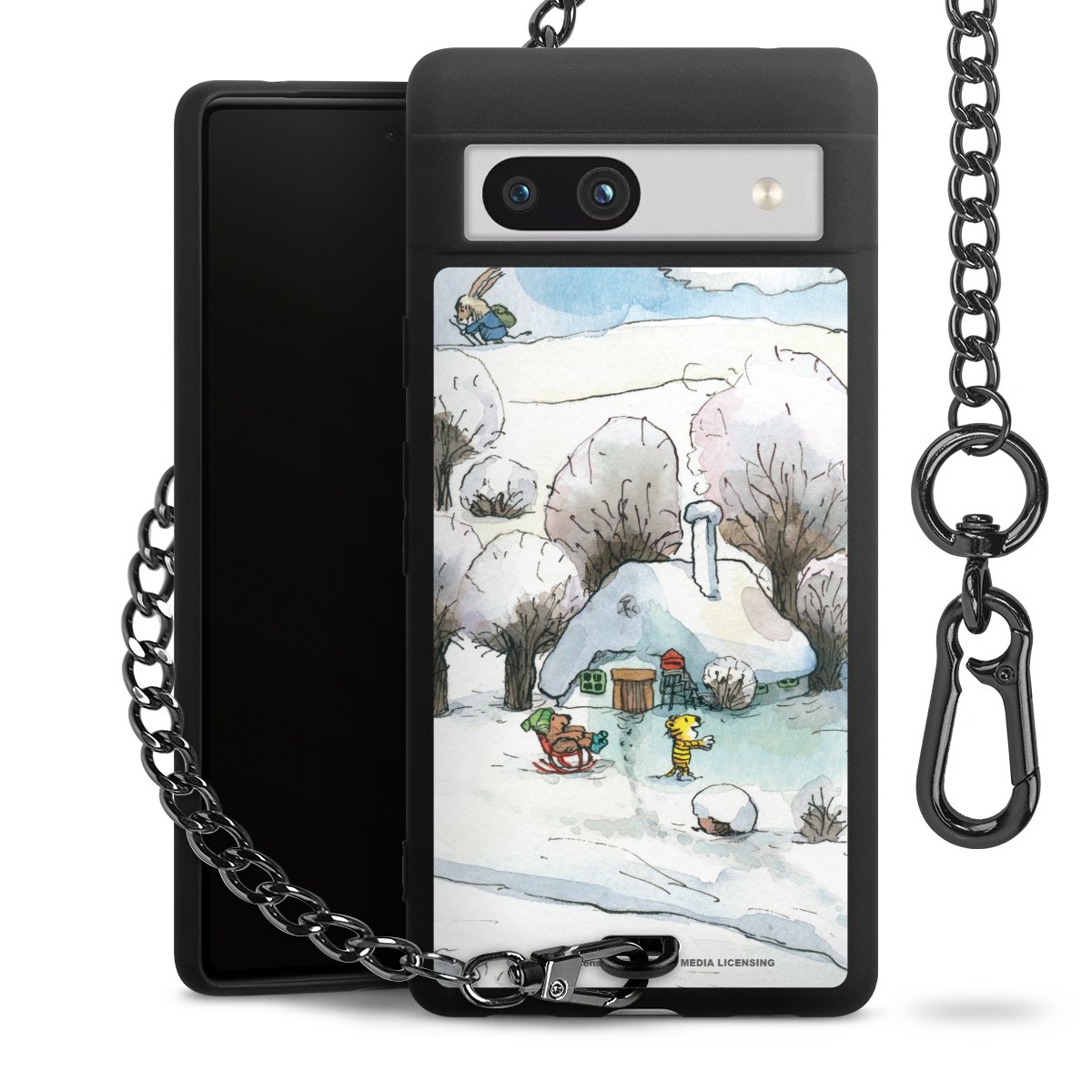 Die mattschwarze Silikon-Handyhülle besteht aus robustem TPU (thermoplastisches Polyurethan). Sie ist flexibel und schützt Dein Smartphone vor Stößen und Kratzern. Die Kette sowie der Karabinerhaken sind aus Metall in Gunmetal-Optik gefertigt. Für dieses Produkt kommen ausschließlich TÜV-geprüfte Materialien zum Einsatz.