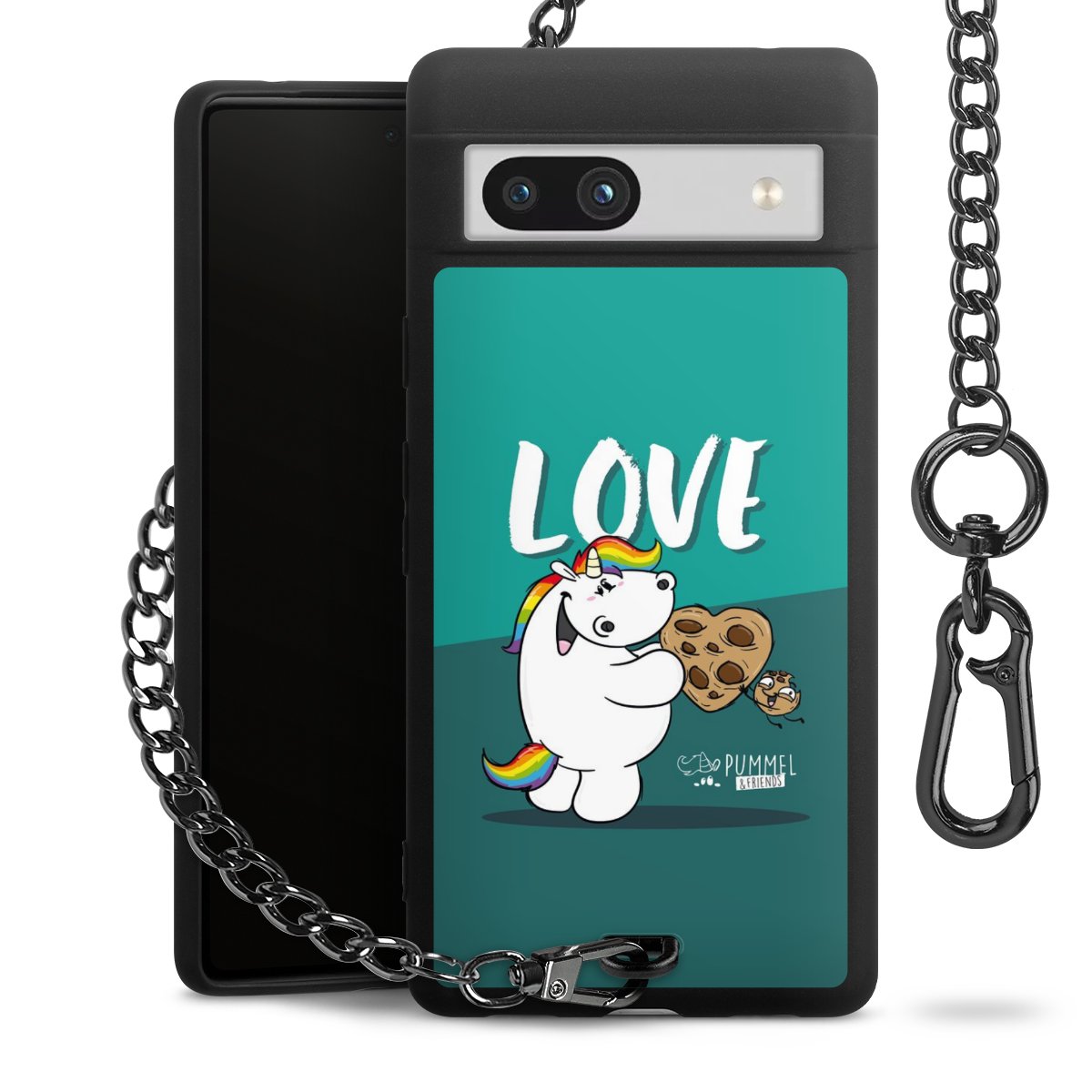 Die mattschwarze Silikon-Handyhülle besteht aus robustem TPU (thermoplastisches Polyurethan). Sie ist flexibel und schützt Dein Smartphone vor Stößen und Kratzern. Die Kette sowie der Karabinerhaken sind aus Metall in Gunmetal-Optik gefertigt. Für dieses Produkt kommen ausschließlich TÜV-geprüfte Materialien zum Einsatz.