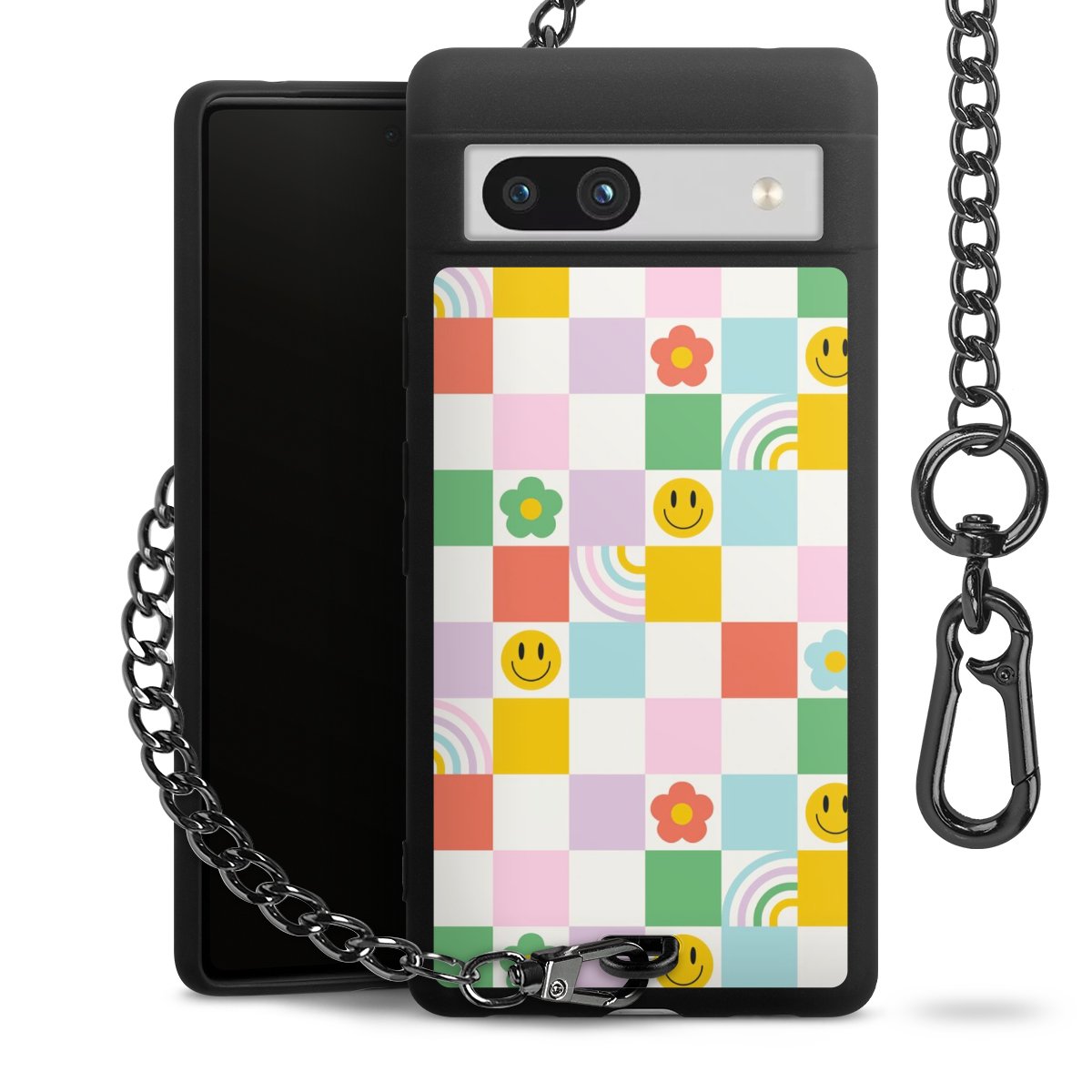 Die mattschwarze Silikon-Handyhülle besteht aus robustem TPU (thermoplastisches Polyurethan). Sie ist flexibel und schützt Dein Smartphone vor Stößen und Kratzern. Die Kette sowie der Karabinerhaken sind aus Metall in Gunmetal-Optik gefertigt. Für dieses Produkt kommen ausschließlich TÜV-geprüfte Materialien zum Einsatz.