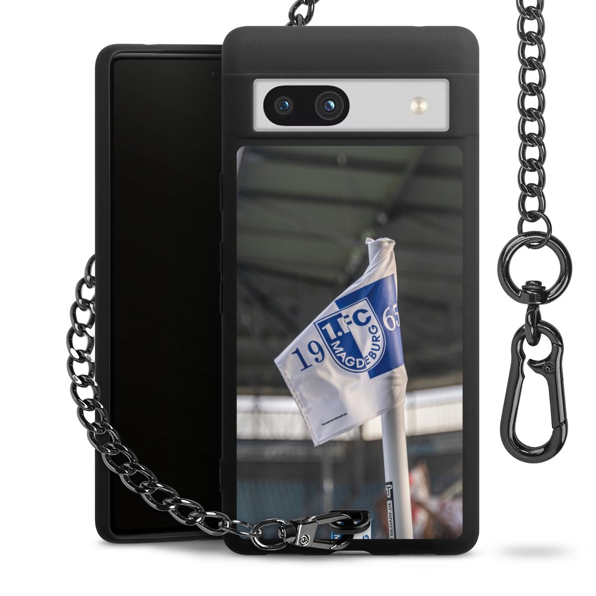 Die mattschwarze Silikon-Handyhülle besteht aus robustem TPU (thermoplastisches Polyurethan). Sie ist flexibel und schützt Dein Smartphone vor Stößen und Kratzern. Die Kette sowie der Karabinerhaken sind aus Metall in Gunmetal-Optik gefertigt. Für dieses Produkt kommen ausschließlich TÜV-geprüfte Materialien zum Einsatz.