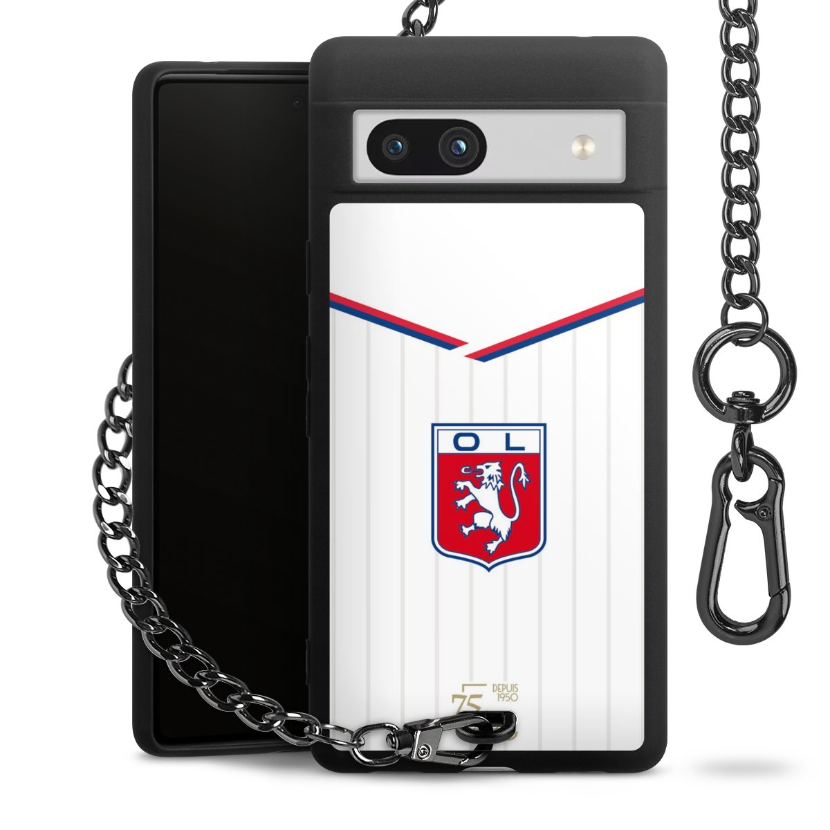 Die mattschwarze Silikon-Handyhülle besteht aus robustem TPU (thermoplastisches Polyurethan). Sie ist flexibel und schützt Dein Smartphone vor Stößen und Kratzern. Die Kette sowie der Karabinerhaken sind aus Metall in Gunmetal-Optik gefertigt. Für dieses Produkt kommen ausschließlich TÜV-geprüfte Materialien zum Einsatz.