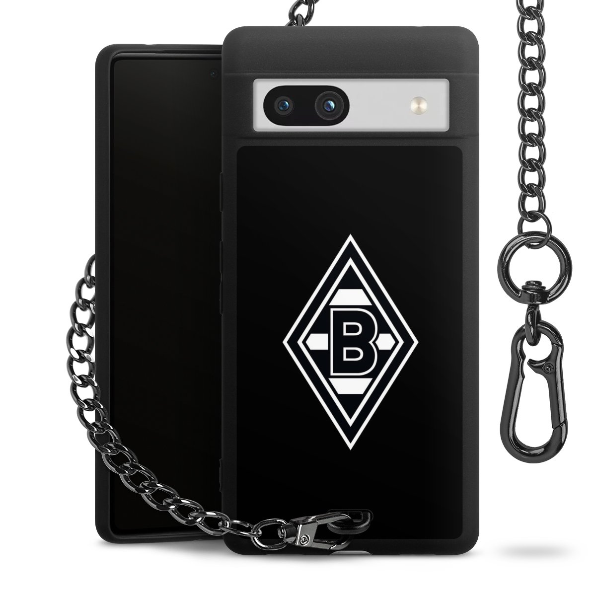 Die mattschwarze Silikon-Handyhülle besteht aus robustem TPU (thermoplastisches Polyurethan). Sie ist flexibel und schützt Dein Smartphone vor Stößen und Kratzern. Die Kette sowie der Karabinerhaken sind aus Metall in Gunmetal-Optik gefertigt. Für dieses Produkt kommen ausschließlich TÜV-geprüfte Materialien zum Einsatz.