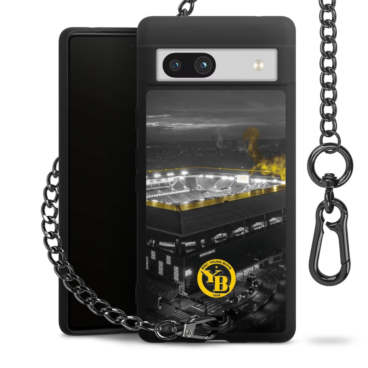 Die mattschwarze Silikon-Handyhülle besteht aus robustem TPU (thermoplastisches Polyurethan). Sie ist flexibel und schützt Dein Smartphone vor Stößen und Kratzern. Die Kette sowie der Karabinerhaken sind aus Metall in Gunmetal-Optik gefertigt. Für dieses Produkt kommen ausschließlich TÜV-geprüfte Materialien zum Einsatz.