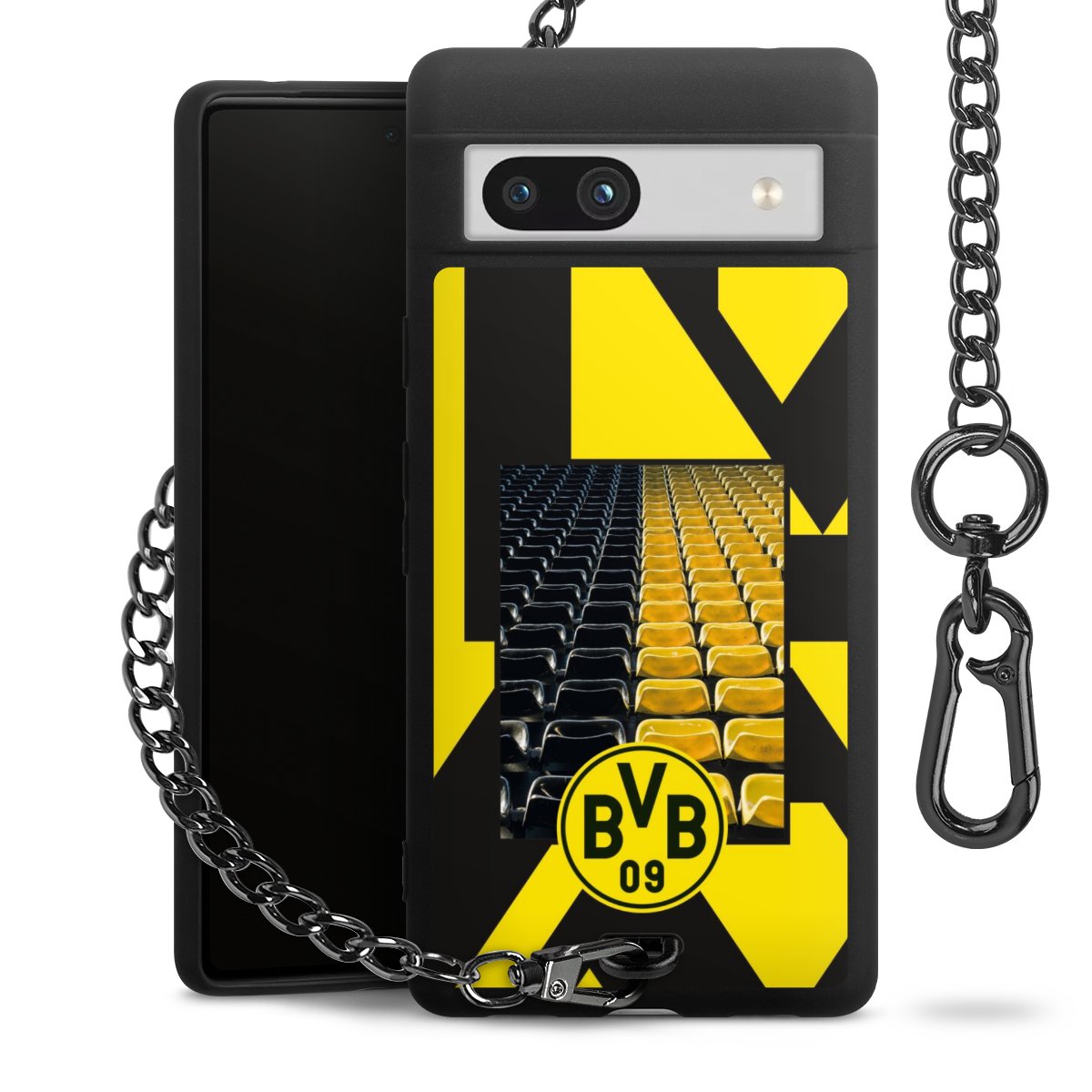 Die mattschwarze Silikon-Handyhülle besteht aus robustem TPU (thermoplastisches Polyurethan). Sie ist flexibel und schützt Dein Smartphone vor Stößen und Kratzern. Die Kette sowie der Karabinerhaken sind aus Metall in Gunmetal-Optik gefertigt. Für dieses Produkt kommen ausschließlich TÜV-geprüfte Materialien zum Einsatz.