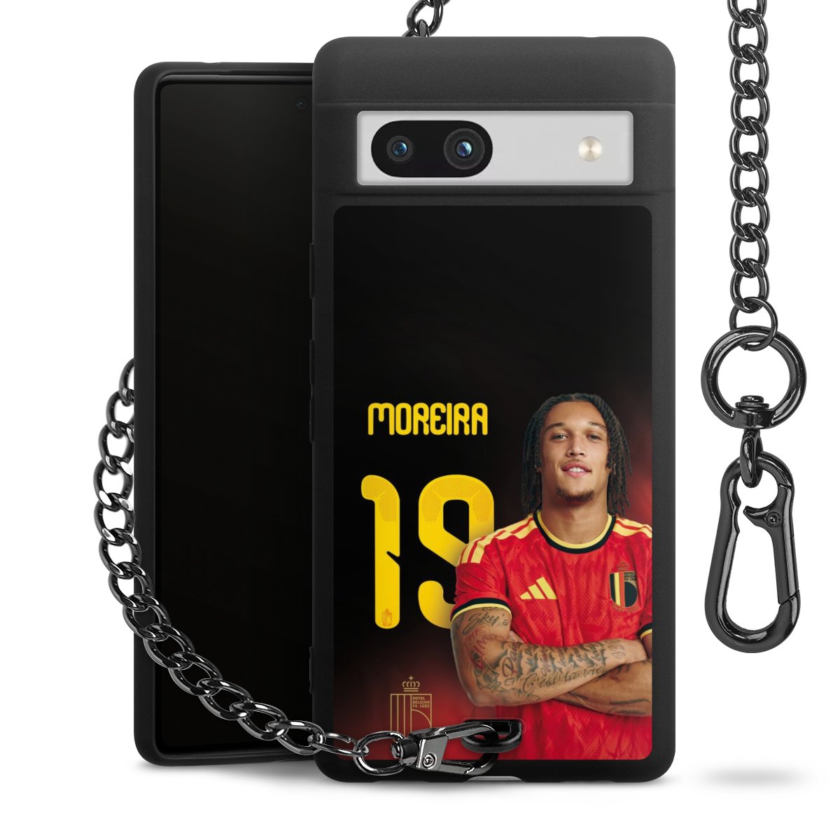 Die mattschwarze Silikon-Handyhülle besteht aus robustem TPU (thermoplastisches Polyurethan). Sie ist flexibel und schützt Dein Smartphone vor Stößen und Kratzern. Die Kette sowie der Karabinerhaken sind aus Metall in Gunmetal-Optik gefertigt. Für dieses Produkt kommen ausschließlich TÜV-geprüfte Materialien zum Einsatz.