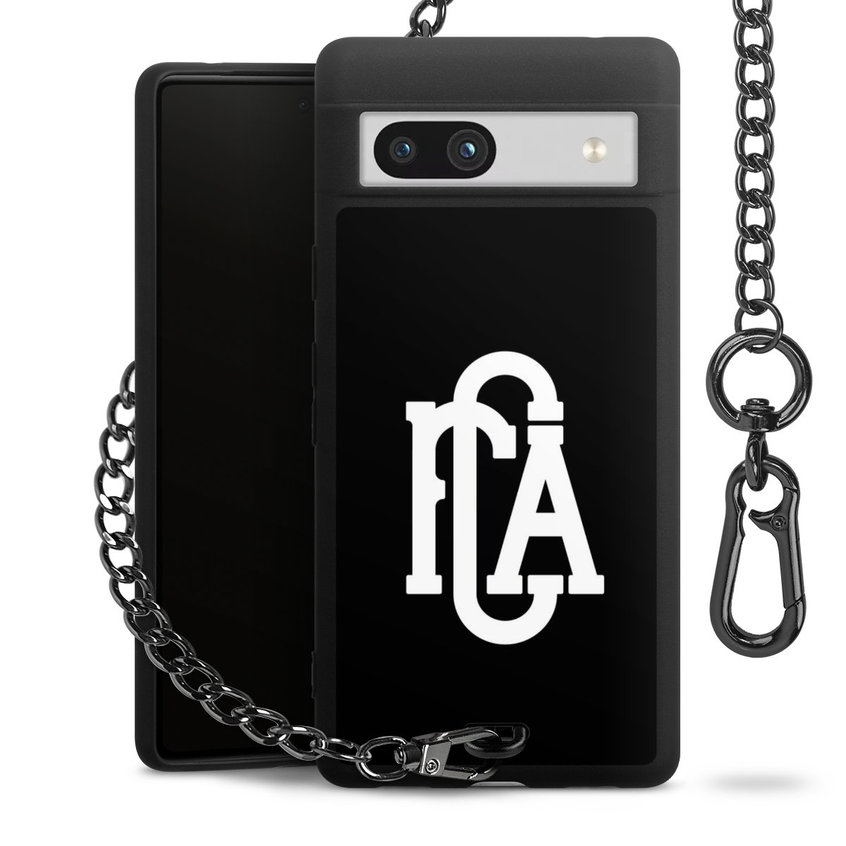 • Mattschwarze Handyhülle mit Metallkette