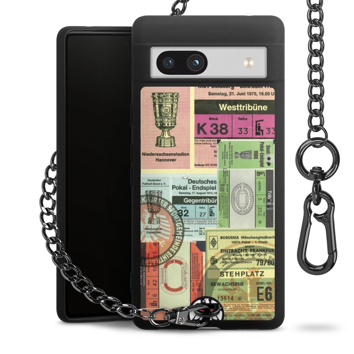 Die mattschwarze Silikon-Handyhülle besteht aus robustem TPU (thermoplastisches Polyurethan). Sie ist flexibel und schützt Dein Smartphone vor Stößen und Kratzern. Die Kette sowie der Karabinerhaken sind aus Metall in Gunmetal-Optik gefertigt. Für dieses Produkt kommen ausschließlich TÜV-geprüfte Materialien zum Einsatz.