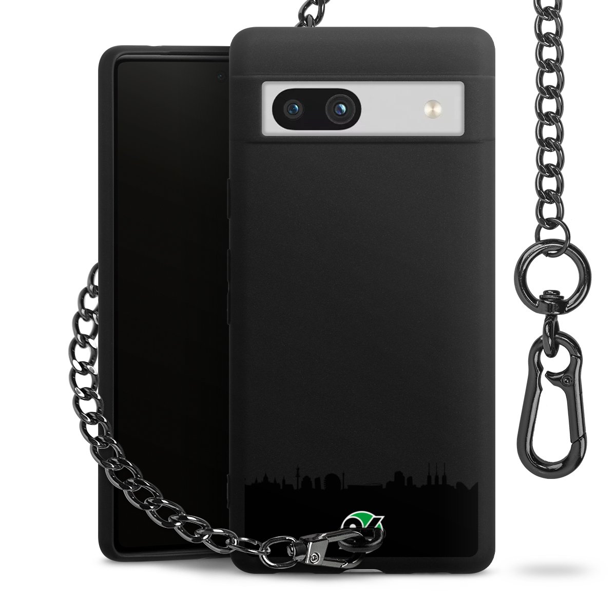 Die mattschwarze Silikon-Handyhülle besteht aus robustem TPU (thermoplastisches Polyurethan). Sie ist flexibel und schützt Dein Smartphone vor Stößen und Kratzern. Die Kette sowie der Karabinerhaken sind aus Metall in Gunmetal-Optik gefertigt. Für dieses Produkt kommen ausschließlich TÜV-geprüfte Materialien zum Einsatz.