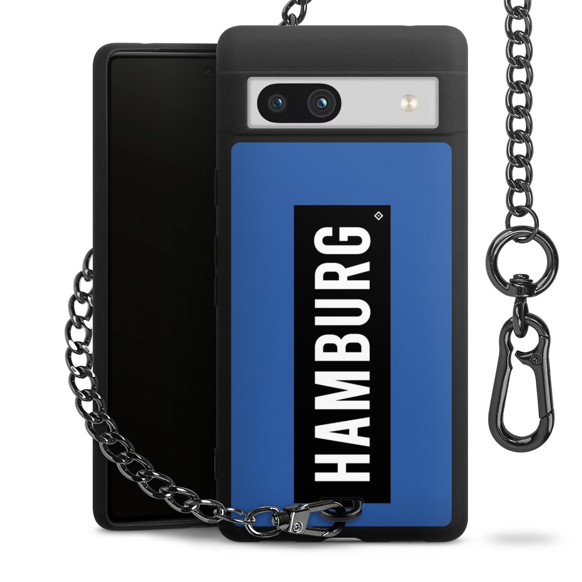 Die mattschwarze Silikon-Handyhülle besteht aus robustem TPU (thermoplastisches Polyurethan). Sie ist flexibel und schützt Dein Smartphone vor Stößen und Kratzern. Die Kette sowie der Karabinerhaken sind aus Metall in Gunmetal-Optik gefertigt. Für dieses Produkt kommen ausschließlich TÜV-geprüfte Materialien zum Einsatz.