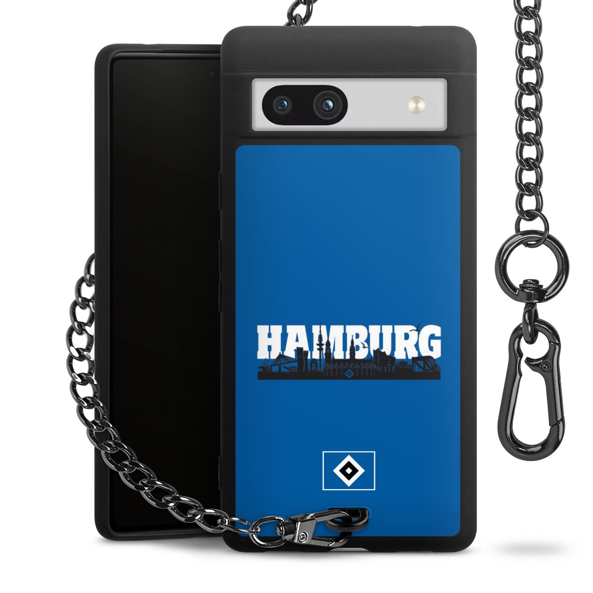 Die mattschwarze Silikon-Handyhülle besteht aus robustem TPU (thermoplastisches Polyurethan). Sie ist flexibel und schützt Dein Smartphone vor Stößen und Kratzern. Die Kette sowie der Karabinerhaken sind aus Metall in Gunmetal-Optik gefertigt. Für dieses Produkt kommen ausschließlich TÜV-geprüfte Materialien zum Einsatz.