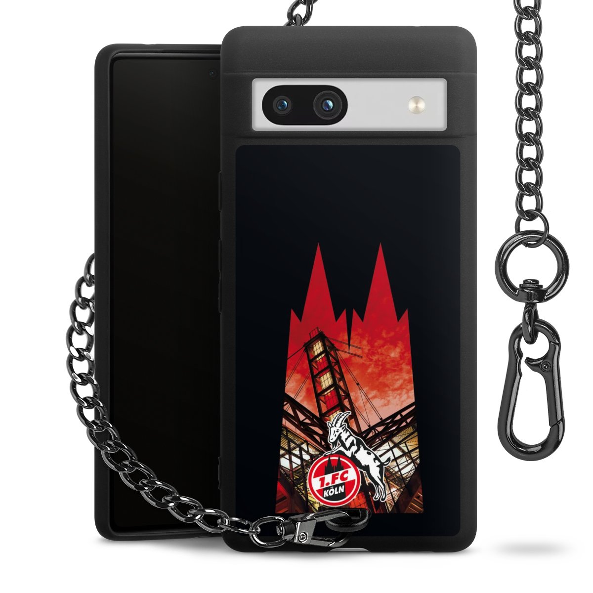 Die mattschwarze Silikon-Handyhülle besteht aus robustem TPU (thermoplastisches Polyurethan). Sie ist flexibel und schützt Dein Smartphone vor Stößen und Kratzern. Die Kette sowie der Karabinerhaken sind aus Metall in Gunmetal-Optik gefertigt. Für dieses Produkt kommen ausschließlich TÜV-geprüfte Materialien zum Einsatz.