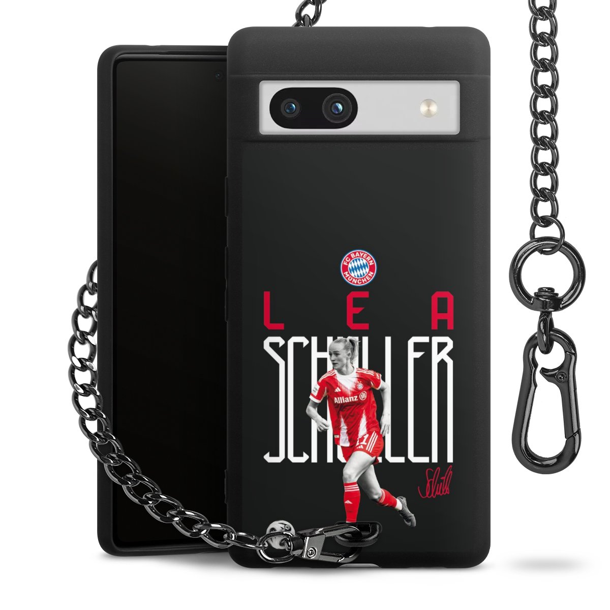 • Mattschwarze Handyhülle mit Metallkette