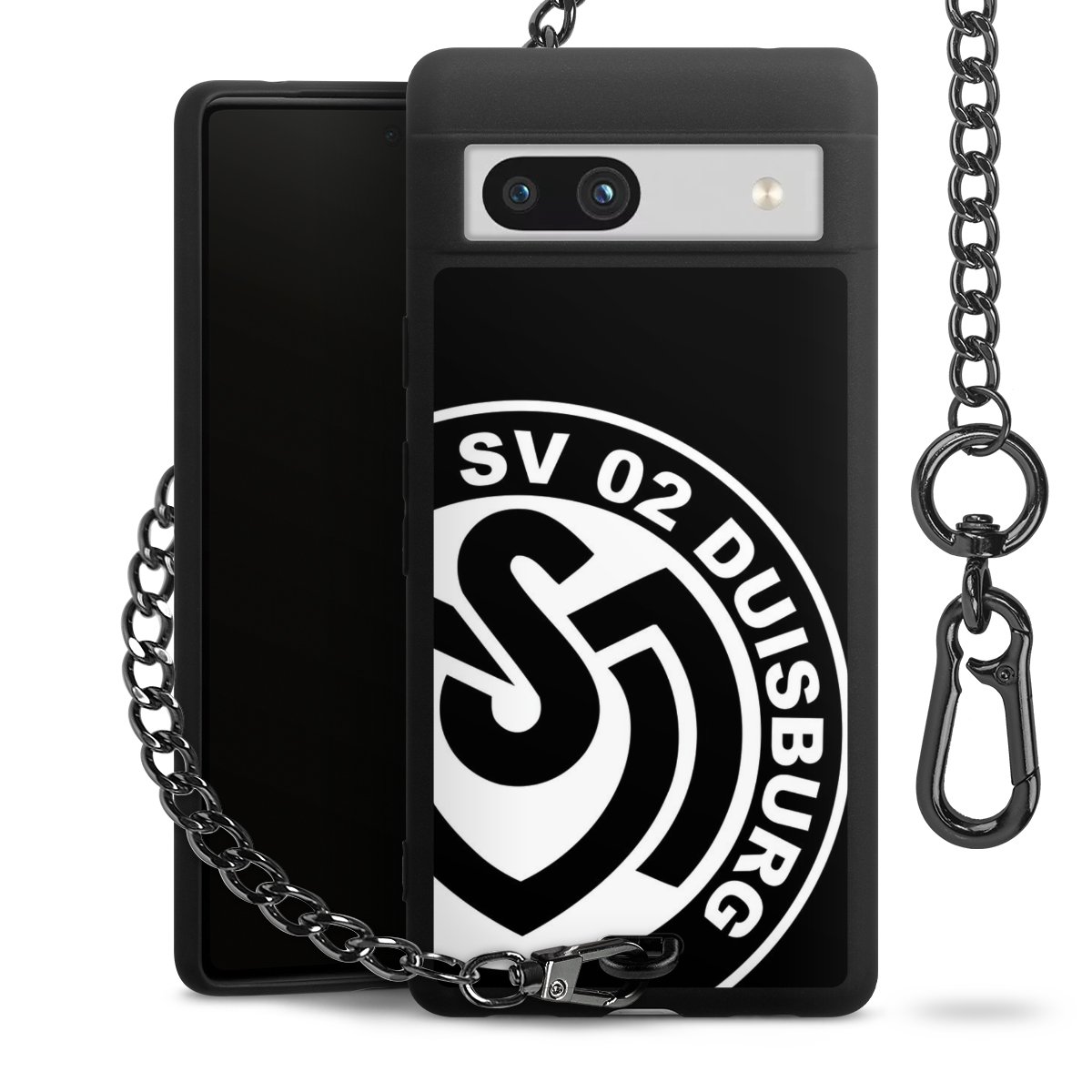 Die mattschwarze Silikon-Handyhülle besteht aus robustem TPU (thermoplastisches Polyurethan). Sie ist flexibel und schützt Dein Smartphone vor Stößen und Kratzern. Die Kette sowie der Karabinerhaken sind aus Metall in Gunmetal-Optik gefertigt. Für dieses Produkt kommen ausschließlich TÜV-geprüfte Materialien zum Einsatz.