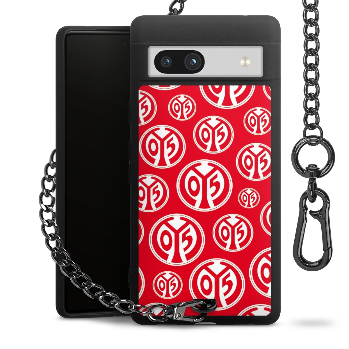 Die mattschwarze Silikon-Handyhülle besteht aus robustem TPU (thermoplastisches Polyurethan). Sie ist flexibel und schützt Dein Smartphone vor Stößen und Kratzern. Die Kette sowie der Karabinerhaken sind aus Metall in Gunmetal-Optik gefertigt. Für dieses Produkt kommen ausschließlich TÜV-geprüfte Materialien zum Einsatz.