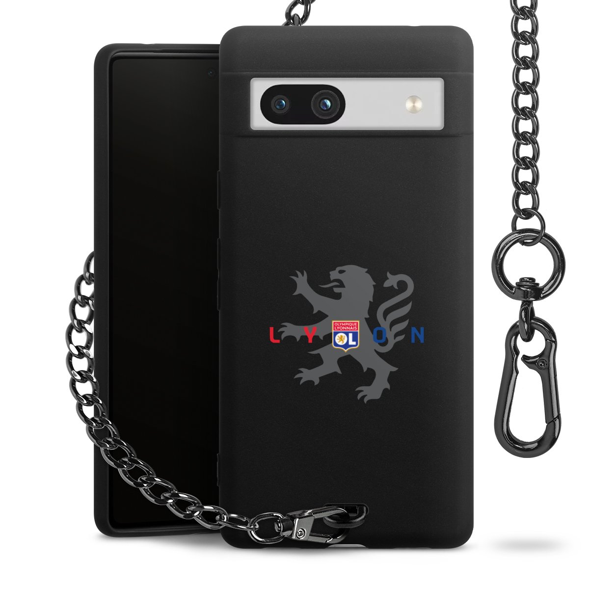 Die mattschwarze Silikon-Handyhülle besteht aus robustem TPU (thermoplastisches Polyurethan). Sie ist flexibel und schützt Dein Smartphone vor Stößen und Kratzern. Die Kette sowie der Karabinerhaken sind aus Metall in Gunmetal-Optik gefertigt. Für dieses Produkt kommen ausschließlich TÜV-geprüfte Materialien zum Einsatz.