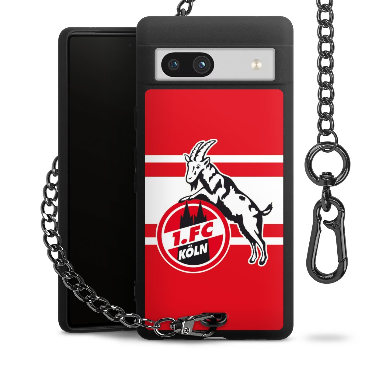 Die mattschwarze Silikon-Handyhülle besteht aus robustem TPU (thermoplastisches Polyurethan). Sie ist flexibel und schützt Dein Smartphone vor Stößen und Kratzern. Die Kette sowie der Karabinerhaken sind aus Metall in Gunmetal-Optik gefertigt. Für dieses Produkt kommen ausschließlich TÜV-geprüfte Materialien zum Einsatz.