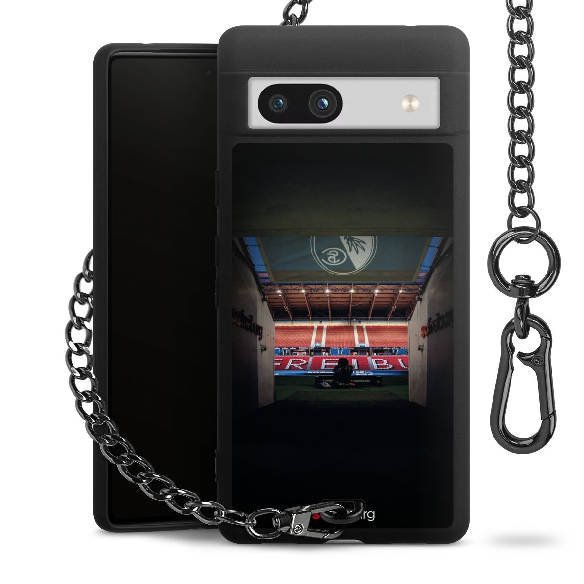 Die mattschwarze Silikon-Handyhülle besteht aus robustem TPU (thermoplastisches Polyurethan). Sie ist flexibel und schützt Dein Smartphone vor Stößen und Kratzern. Die Kette sowie der Karabinerhaken sind aus Metall in Gunmetal-Optik gefertigt. Für dieses Produkt kommen ausschließlich TÜV-geprüfte Materialien zum Einsatz.