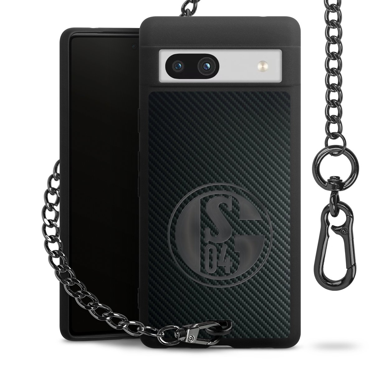 Die mattschwarze Silikon-Handyhülle besteht aus robustem TPU (thermoplastisches Polyurethan). Sie ist flexibel und schützt Dein Smartphone vor Stößen und Kratzern. Die Kette sowie der Karabinerhaken sind aus Metall in Gunmetal-Optik gefertigt. Für dieses Produkt kommen ausschließlich TÜV-geprüfte Materialien zum Einsatz.