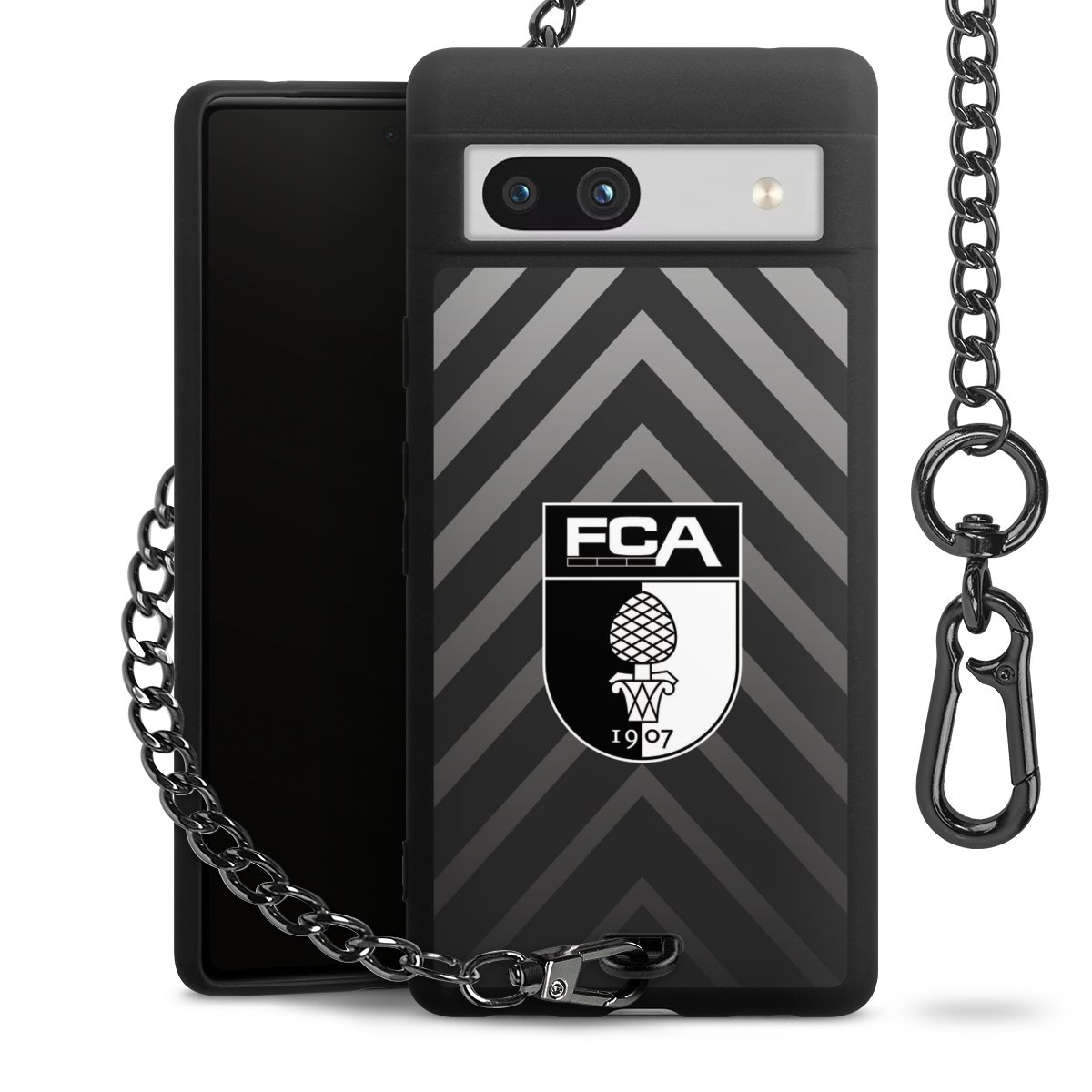 Die mattschwarze Silikon-Handyhülle besteht aus robustem TPU (thermoplastisches Polyurethan). Sie ist flexibel und schützt Dein Smartphone vor Stößen und Kratzern. Die Kette sowie der Karabinerhaken sind aus Metall in Gunmetal-Optik gefertigt. Für dieses Produkt kommen ausschließlich TÜV-geprüfte Materialien zum Einsatz.