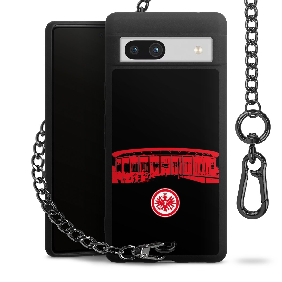 • Mattschwarze Handyhülle mit Metallkette