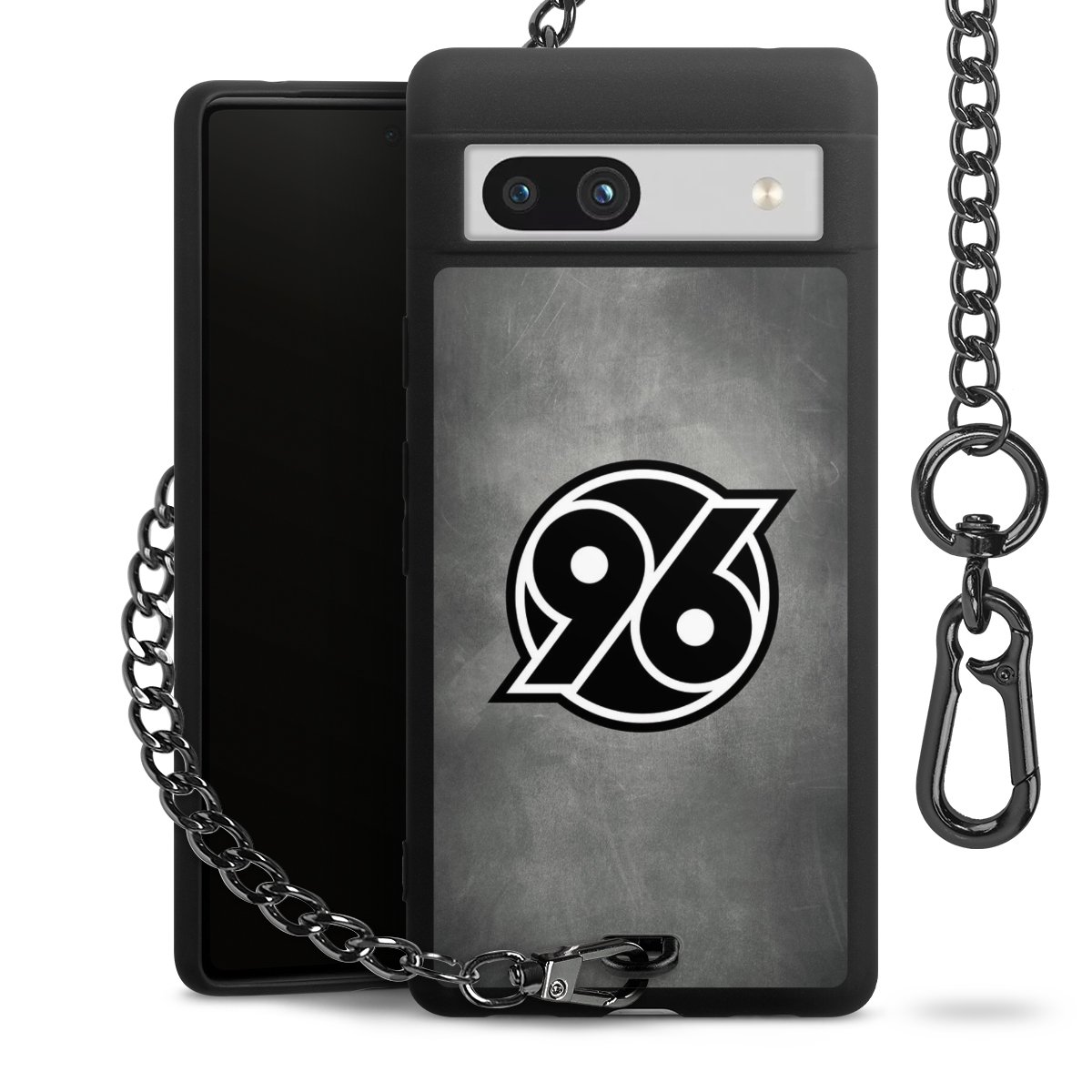 Die mattschwarze Silikon-Handyhülle besteht aus robustem TPU (thermoplastisches Polyurethan). Sie ist flexibel und schützt Dein Smartphone vor Stößen und Kratzern. Die Kette sowie der Karabinerhaken sind aus Metall in Gunmetal-Optik gefertigt. Für dieses Produkt kommen ausschließlich TÜV-geprüfte Materialien zum Einsatz.