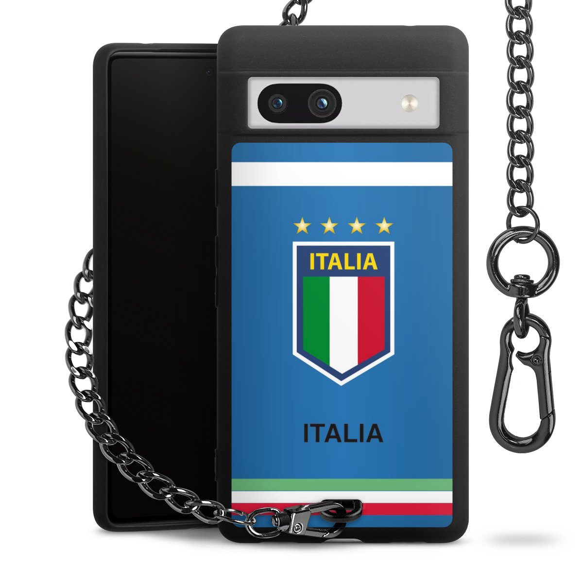 - Mattschwarze Handyhülle mit Metallkette