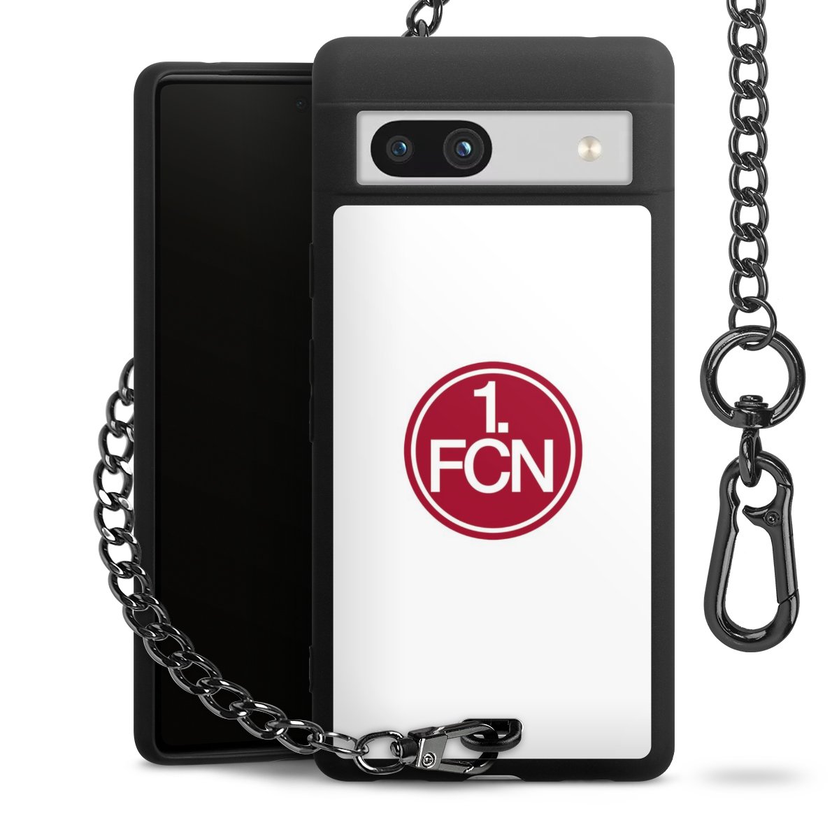Die mattschwarze Silikon-Handyhülle besteht aus robustem TPU (thermoplastisches Polyurethan). Sie ist flexibel und schützt Dein Smartphone vor Stößen und Kratzern. Die Kette sowie der Karabinerhaken sind aus Metall in Gunmetal-Optik gefertigt. Für dieses Produkt kommen ausschließlich TÜV-geprüfte Materialien zum Einsatz.