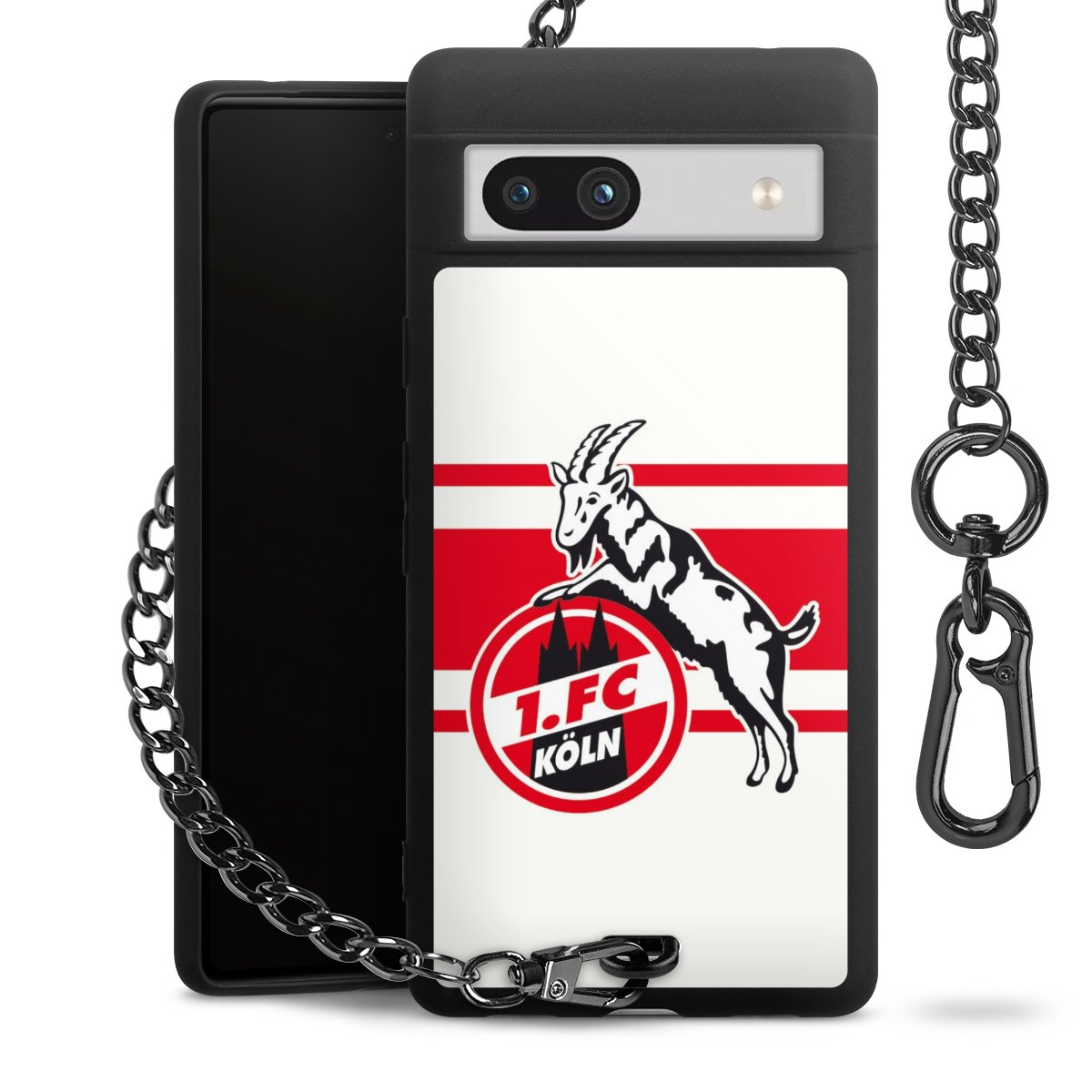 Die mattschwarze Silikon-Handyhülle besteht aus robustem TPU (thermoplastisches Polyurethan). Sie ist flexibel und schützt Dein Smartphone vor Stößen und Kratzern. Die Kette sowie der Karabinerhaken sind aus Metall in Gunmetal-Optik gefertigt. Für dieses Produkt kommen ausschließlich TÜV-geprüfte Materialien zum Einsatz.