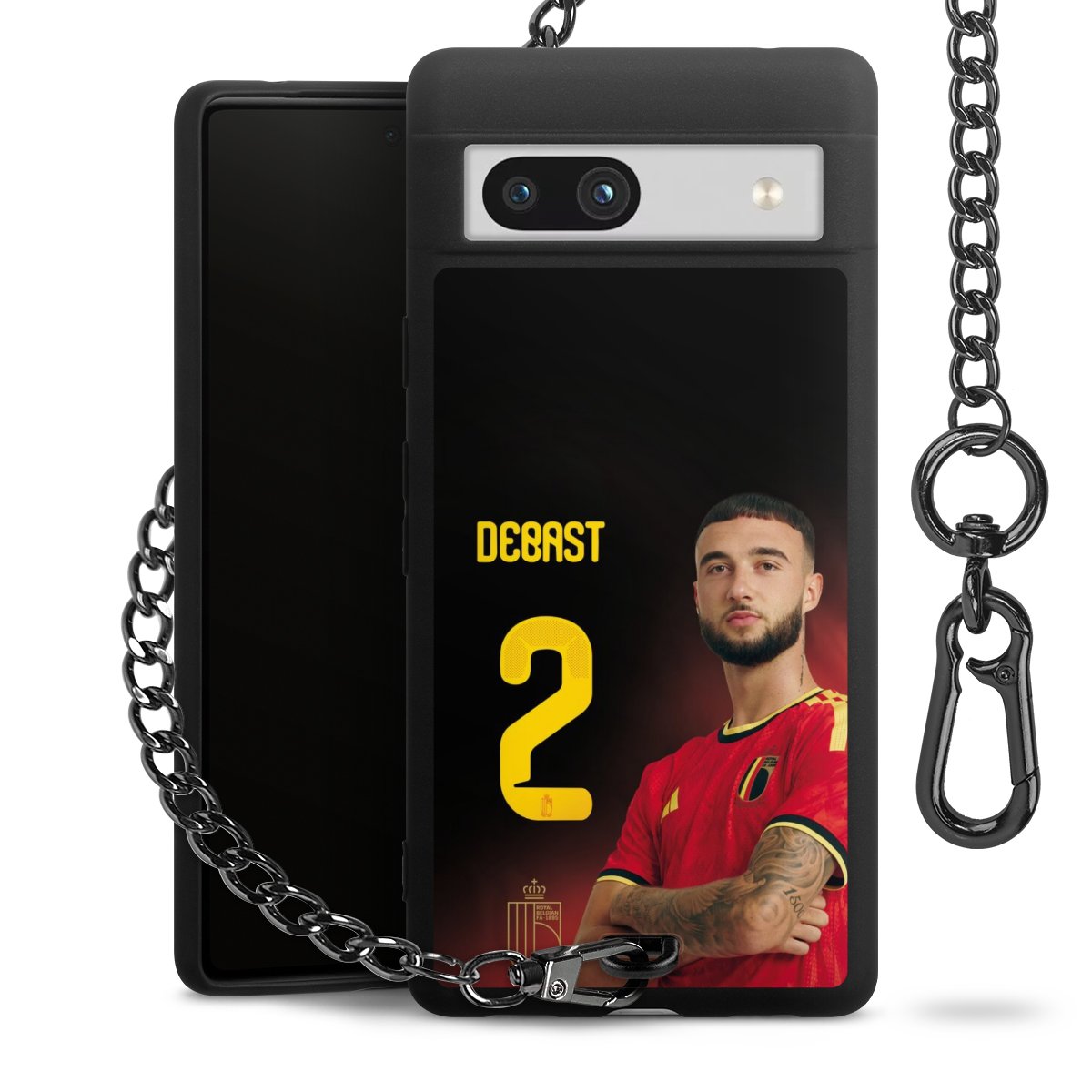 Die mattschwarze Silikon-Handyhülle besteht aus robustem TPU (thermoplastisches Polyurethan). Sie ist flexibel und schützt Dein Smartphone vor Stößen und Kratzern. Die Kette sowie der Karabinerhaken sind aus Metall in Gunmetal-Optik gefertigt. Für dieses Produkt kommen ausschließlich TÜV-geprüfte Materialien zum Einsatz.
