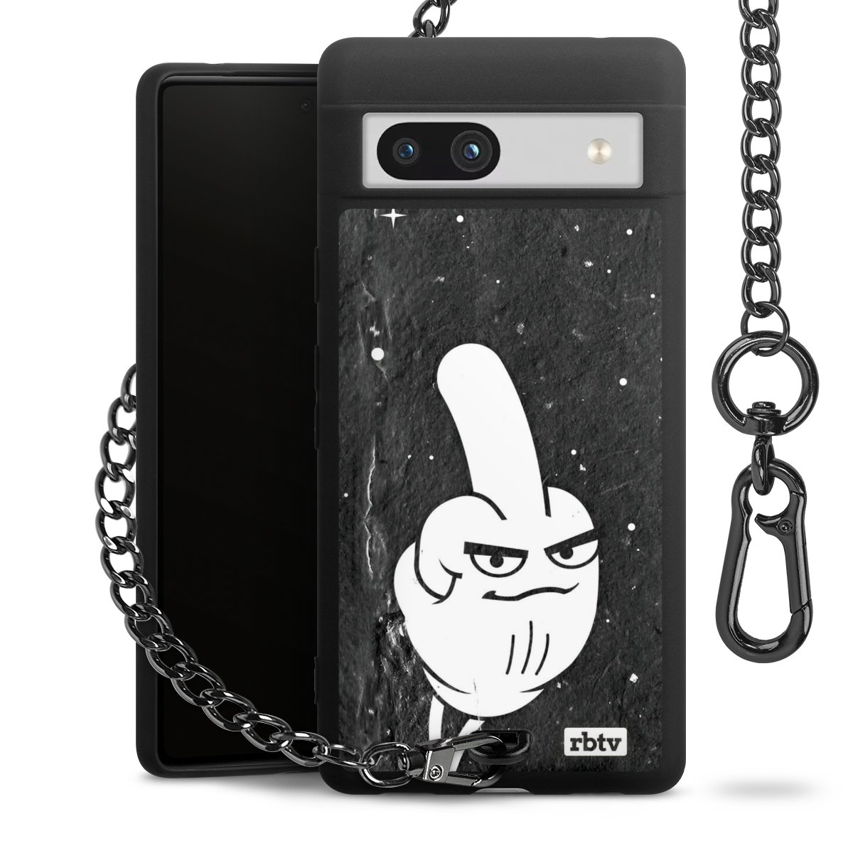 Die mattschwarze Silikon-Handyhülle besteht aus robustem TPU (thermoplastisches Polyurethan). Sie ist flexibel und schützt Dein Smartphone vor Stößen und Kratzern. Die Kette sowie der Karabinerhaken sind aus Metall in Gunmetal-Optik gefertigt. Für dieses Produkt kommen ausschließlich TÜV-geprüfte Materialien zum Einsatz.