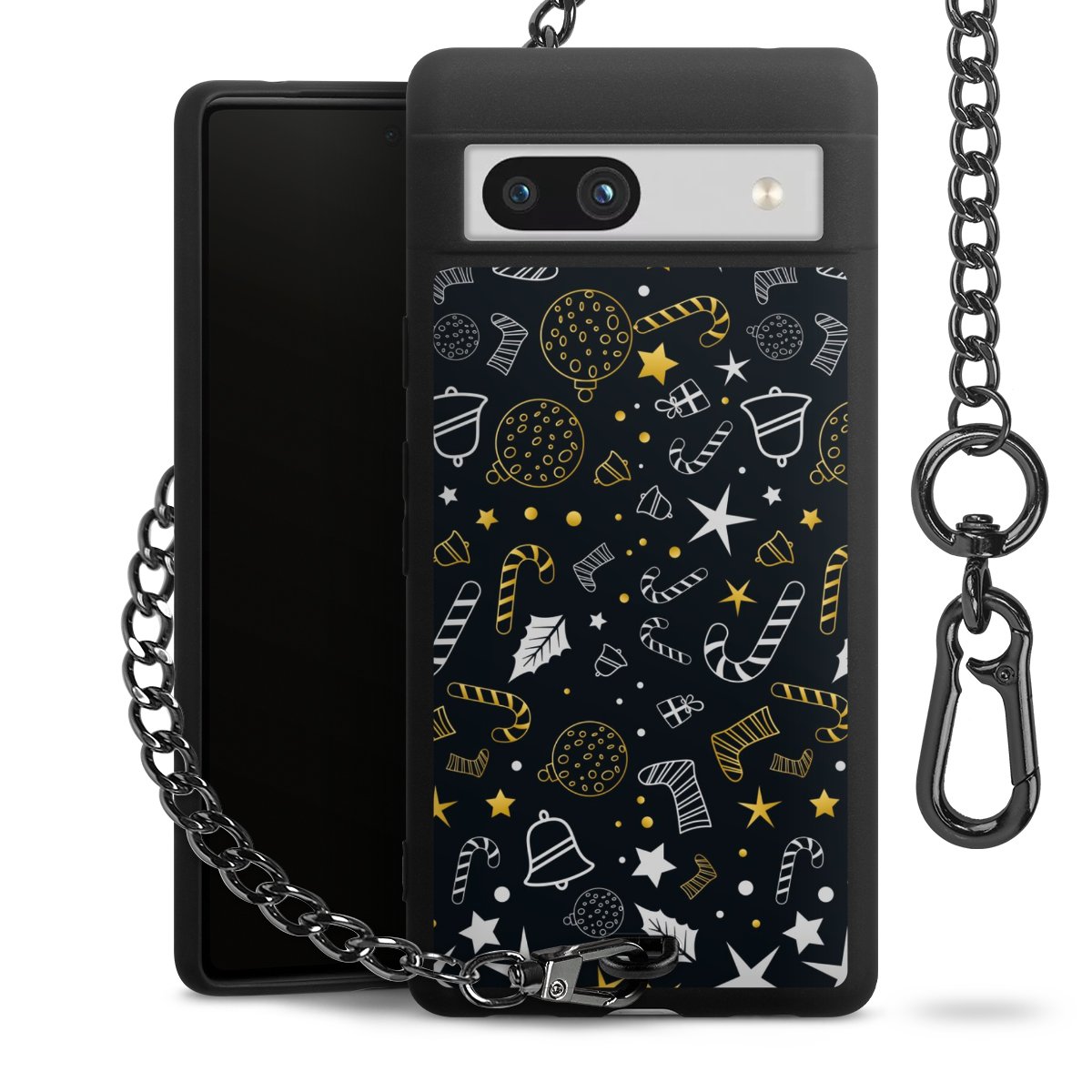 - Mattschwarze Handyhülle mit Metallkette