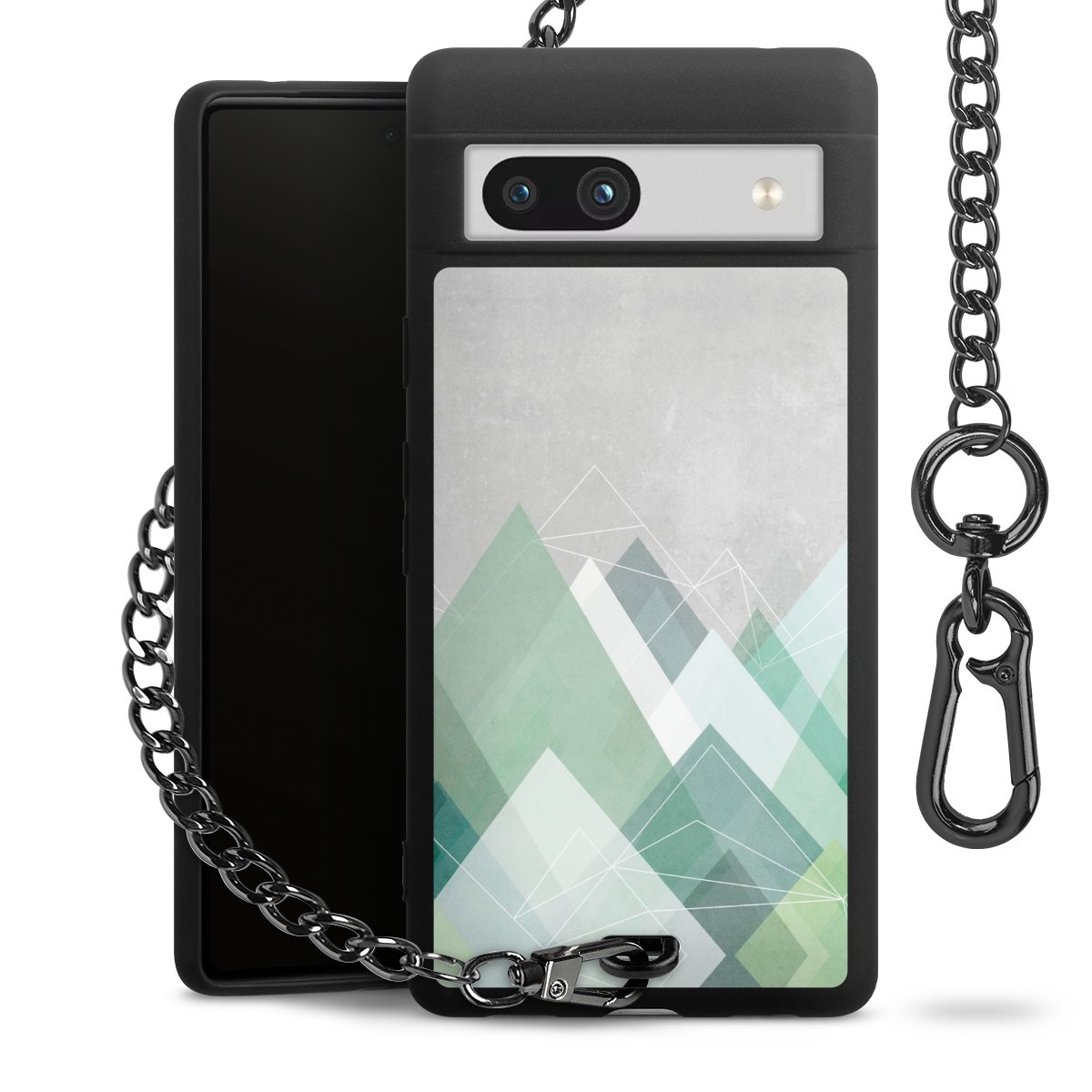 Die mattschwarze Silikon-Handyhülle besteht aus robustem TPU (thermoplastisches Polyurethan). Sie ist flexibel und schützt Dein Smartphone vor Stößen und Kratzern. Die Kette sowie der Karabinerhaken sind aus Metall in Gunmetal-Optik gefertigt. Für dieses Produkt kommen ausschließlich TÜV-geprüfte Materialien zum Einsatz.