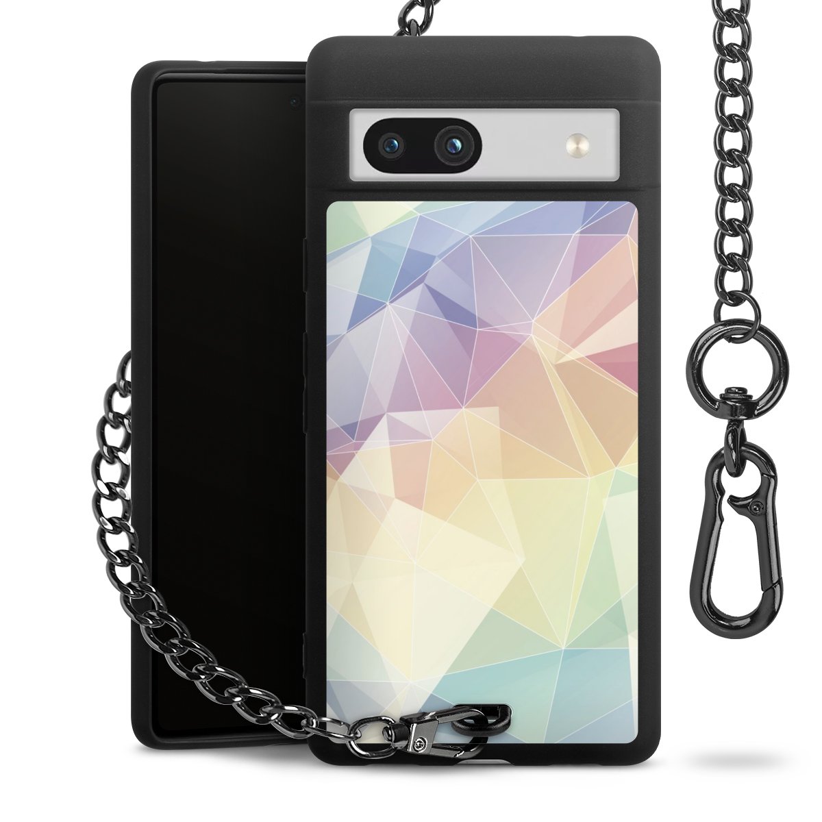 Die mattschwarze Silikon-Handyhülle besteht aus robustem TPU (thermoplastisches Polyurethan). Sie ist flexibel und schützt Dein Smartphone vor Stößen und Kratzern. Die Kette sowie der Karabinerhaken sind aus Metall in Gunmetal-Optik gefertigt. Für dieses Produkt kommen ausschließlich TÜV-geprüfte Materialien zum Einsatz.