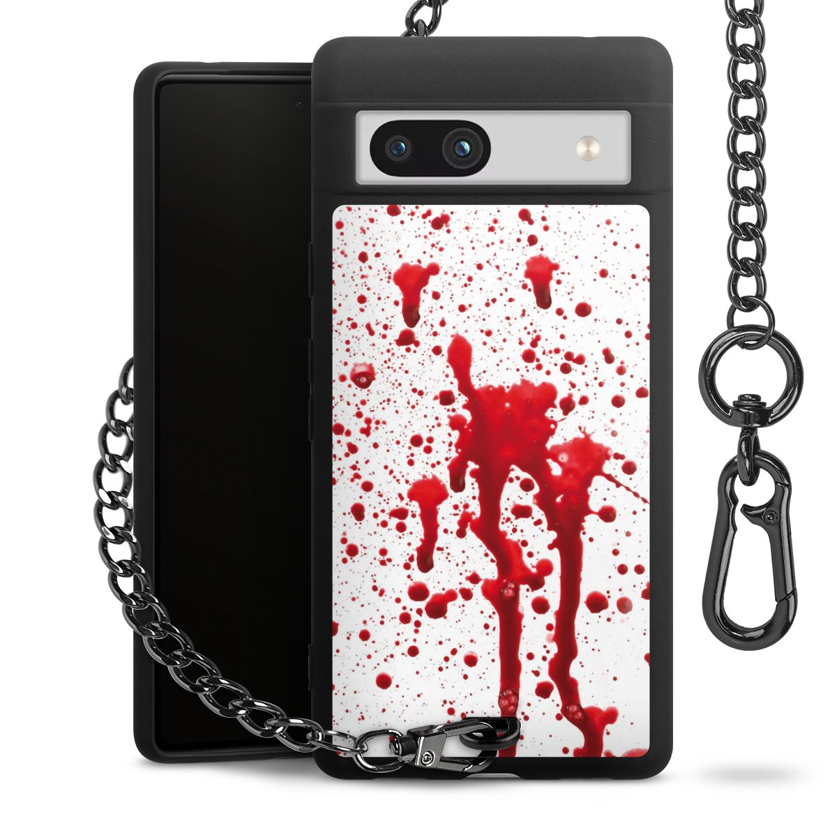 Die mattschwarze Silikon-Handyhülle besteht aus robustem TPU (thermoplastisches Polyurethan). Sie ist flexibel und schützt Dein Smartphone vor Stößen und Kratzern. Die Kette sowie der Karabinerhaken sind aus Metall in Gunmetal-Optik gefertigt. Für dieses Produkt kommen ausschließlich TÜV-geprüfte Materialien zum Einsatz.