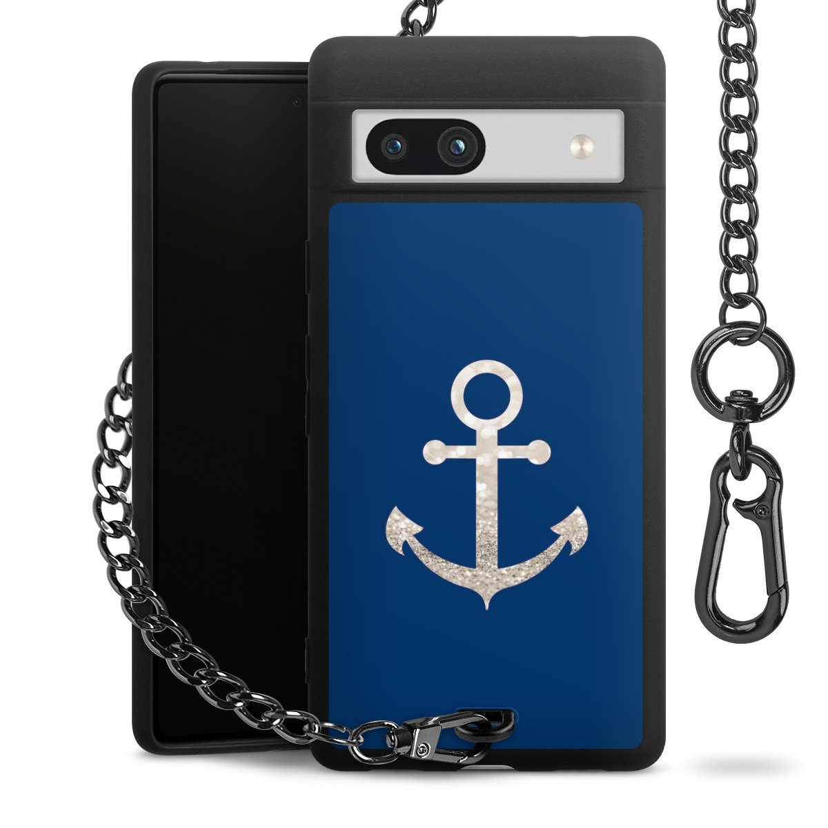 - Mattschwarze Handyhülle mit Metallkette