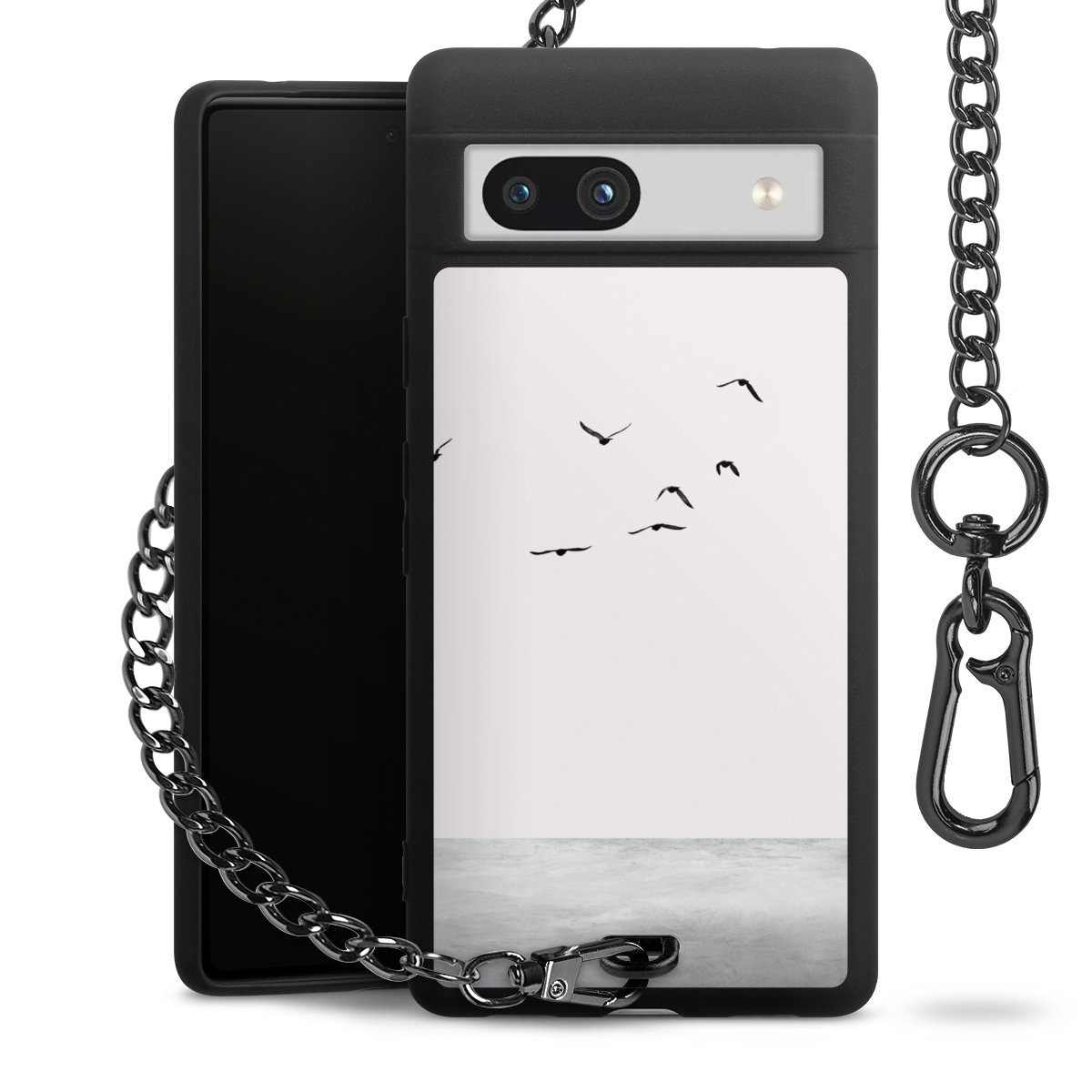 Die mattschwarze Silikon-Handyhülle besteht aus robustem TPU (thermoplastisches Polyurethan). Sie ist flexibel und schützt Dein Smartphone vor Stößen und Kratzern. Die Kette sowie der Karabinerhaken sind aus Metall in Gunmetal-Optik gefertigt. Für dieses Produkt kommen ausschließlich TÜV-geprüfte Materialien zum Einsatz.