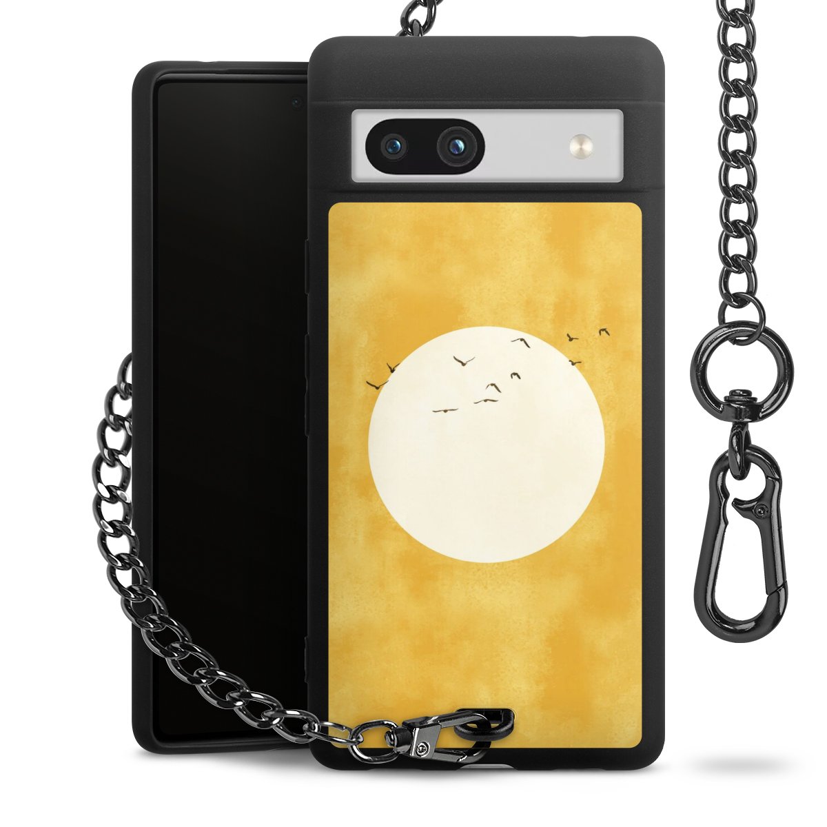 • Mattschwarze Handyhülle mit Metallkette