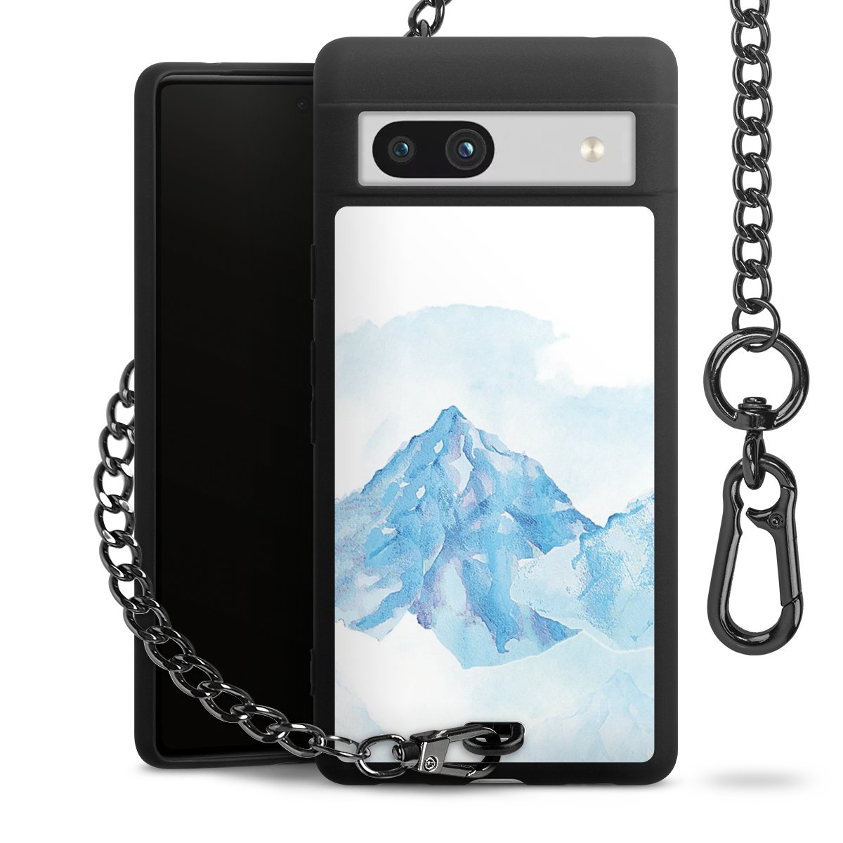- Mattschwarze Handyhülle mit Metallkette
