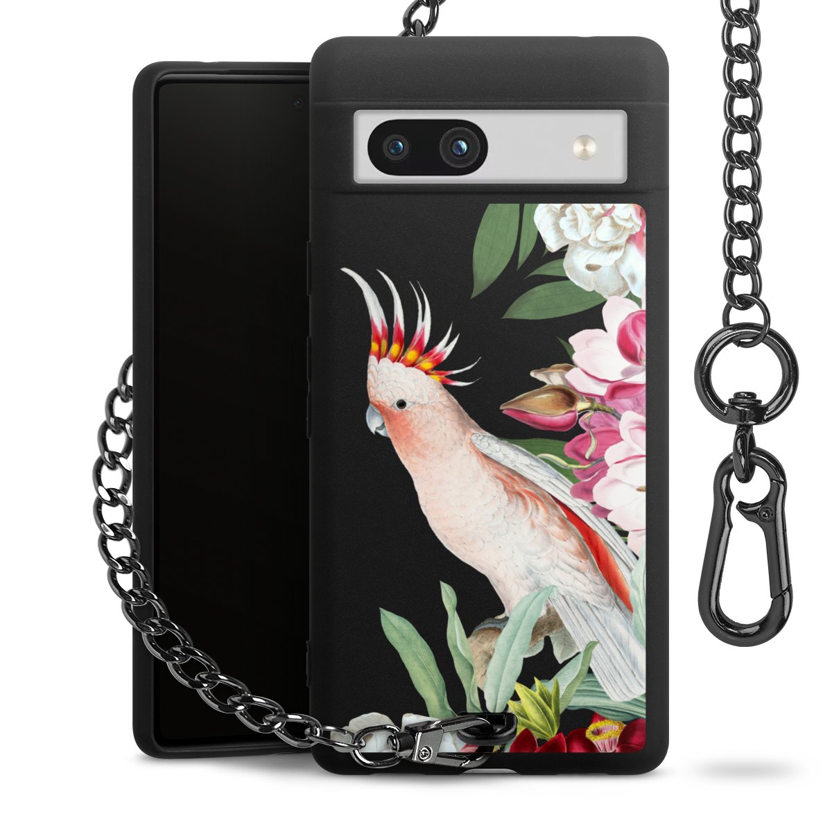 Die mattschwarze Silikon-Handyhülle besteht aus robustem TPU (thermoplastisches Polyurethan). Sie ist flexibel und schützt Dein Smartphone vor Stößen und Kratzern. Die Kette sowie der Karabinerhaken sind aus Metall in Gunmetal-Optik gefertigt. Für dieses Produkt kommen ausschließlich TÜV-geprüfte Materialien zum Einsatz.